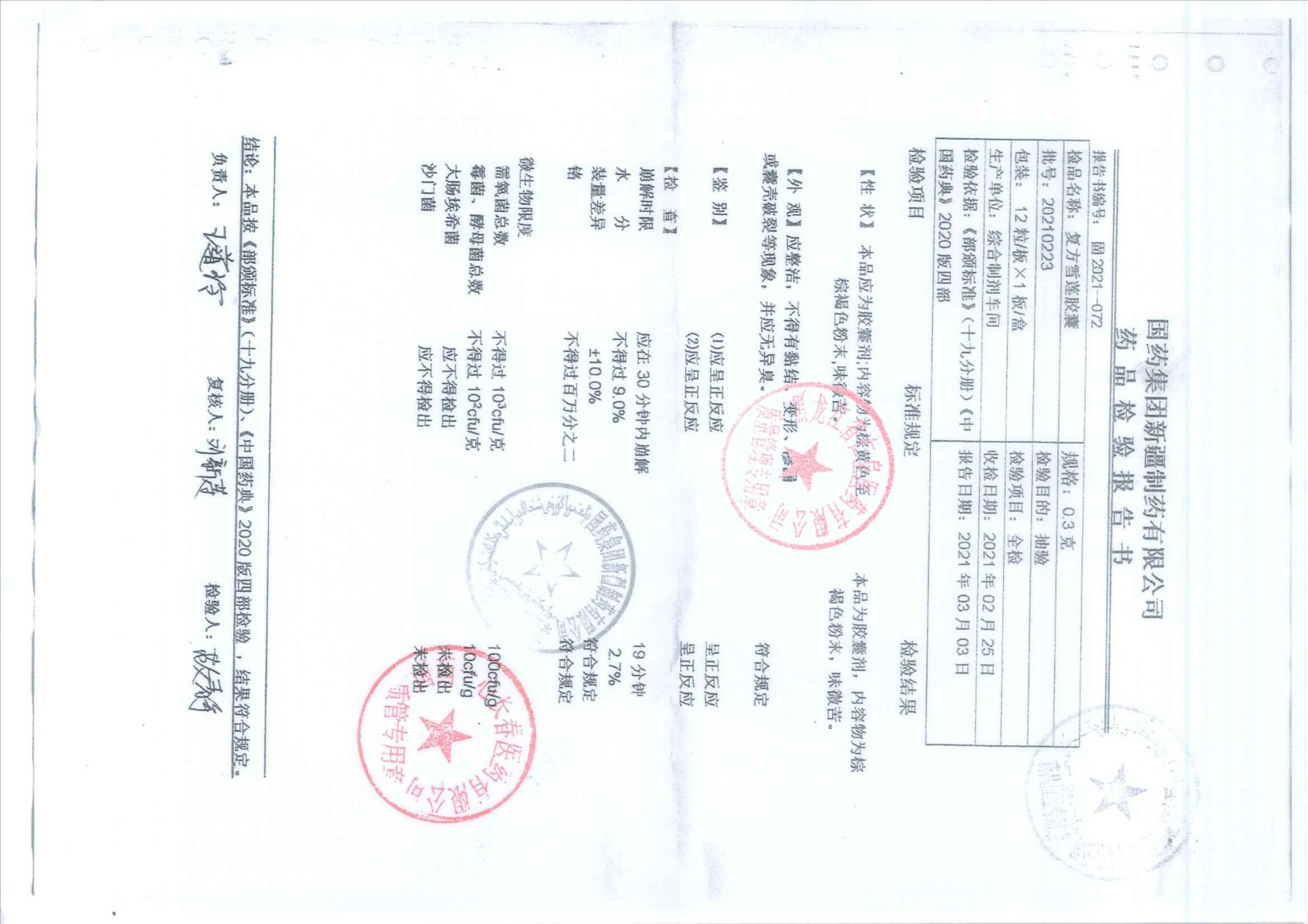 復(fù)方雪蓮膠囊2021