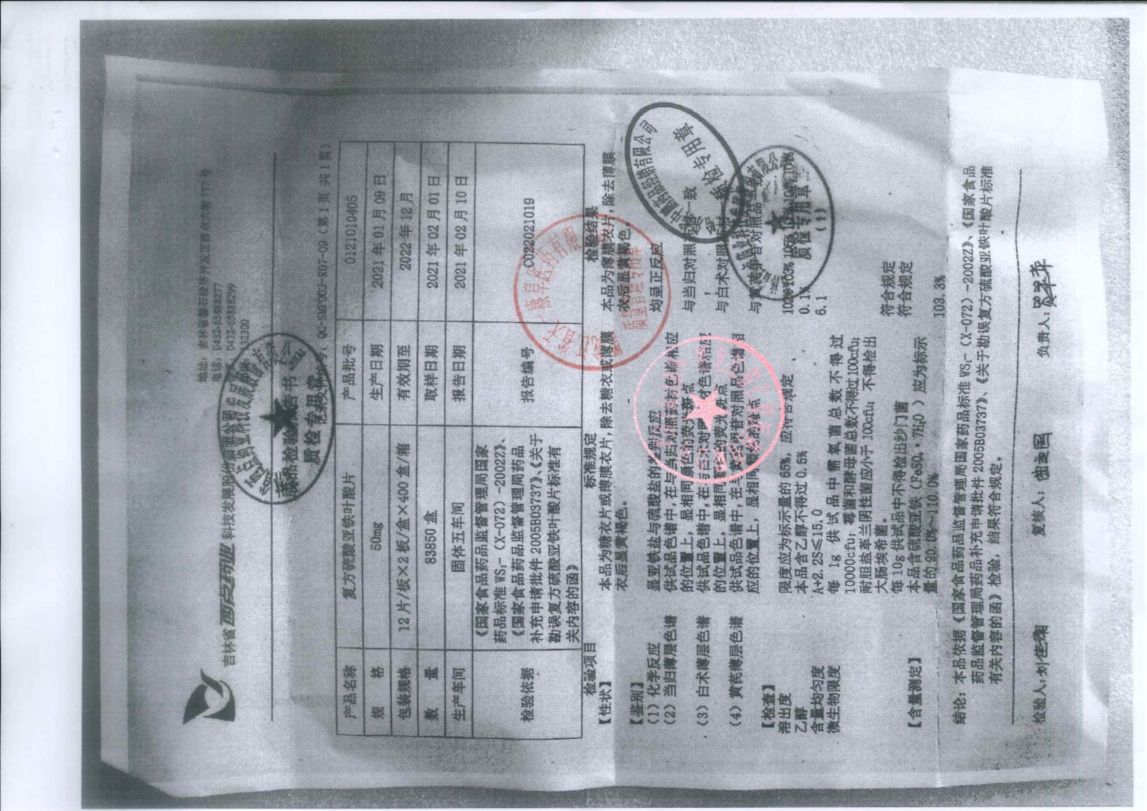 復(fù)方硫酸亞鐵葉酸片0