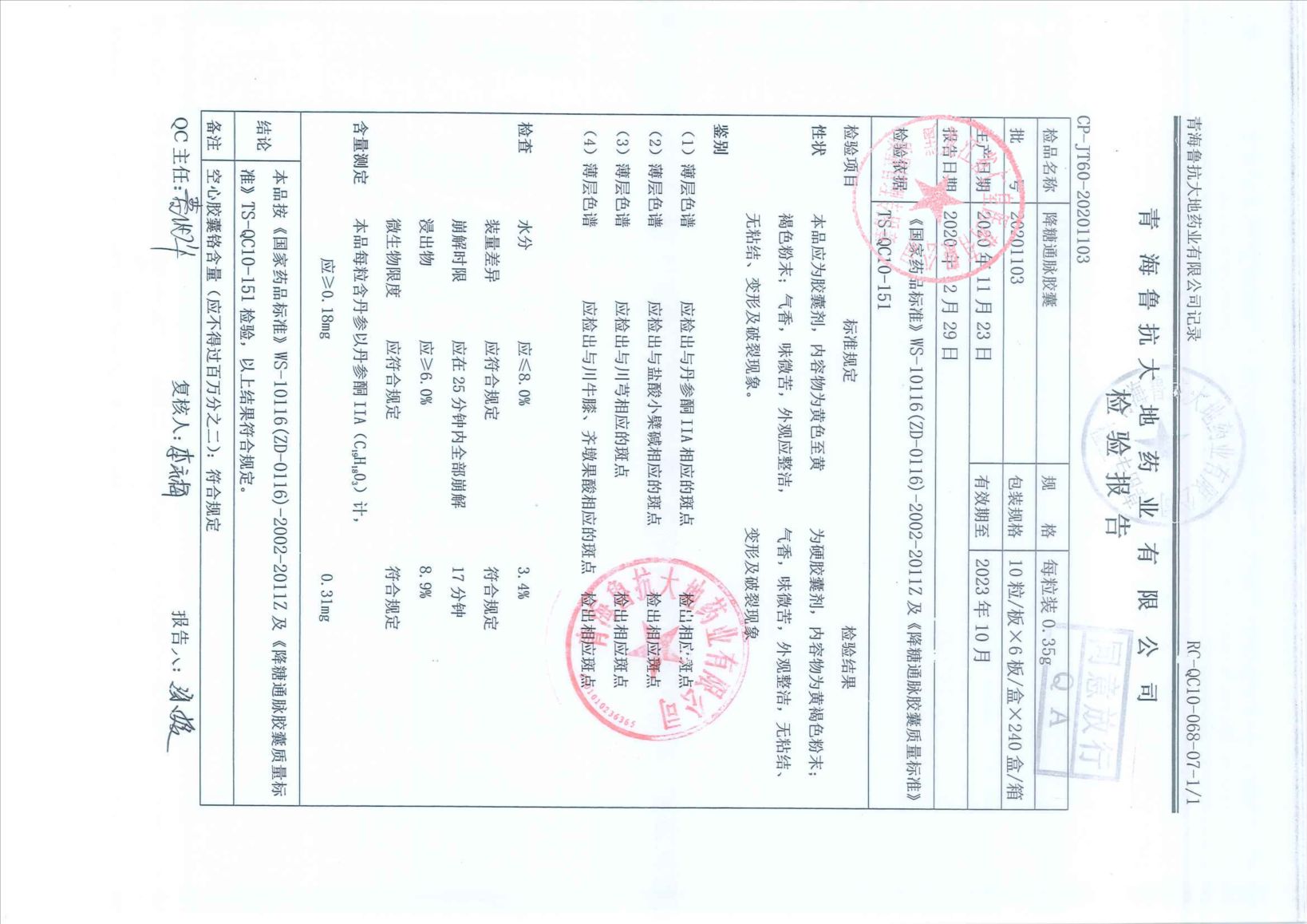降糖通脈膠囊2020