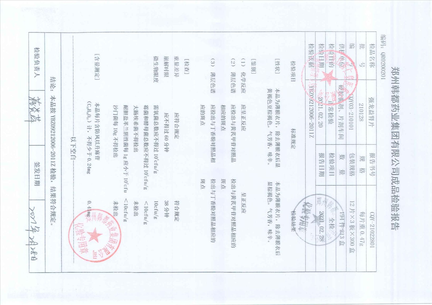 強龍益腎片21012