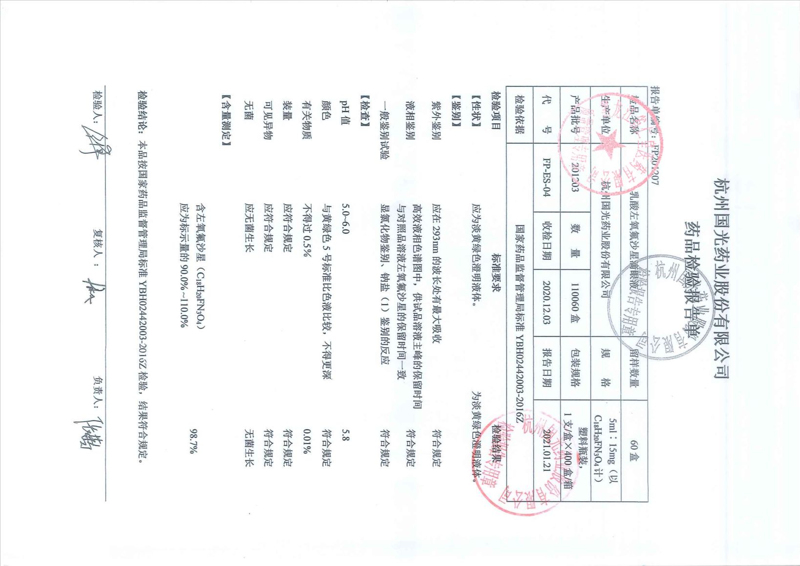 乳酸左氧氟沙星滴眼液
