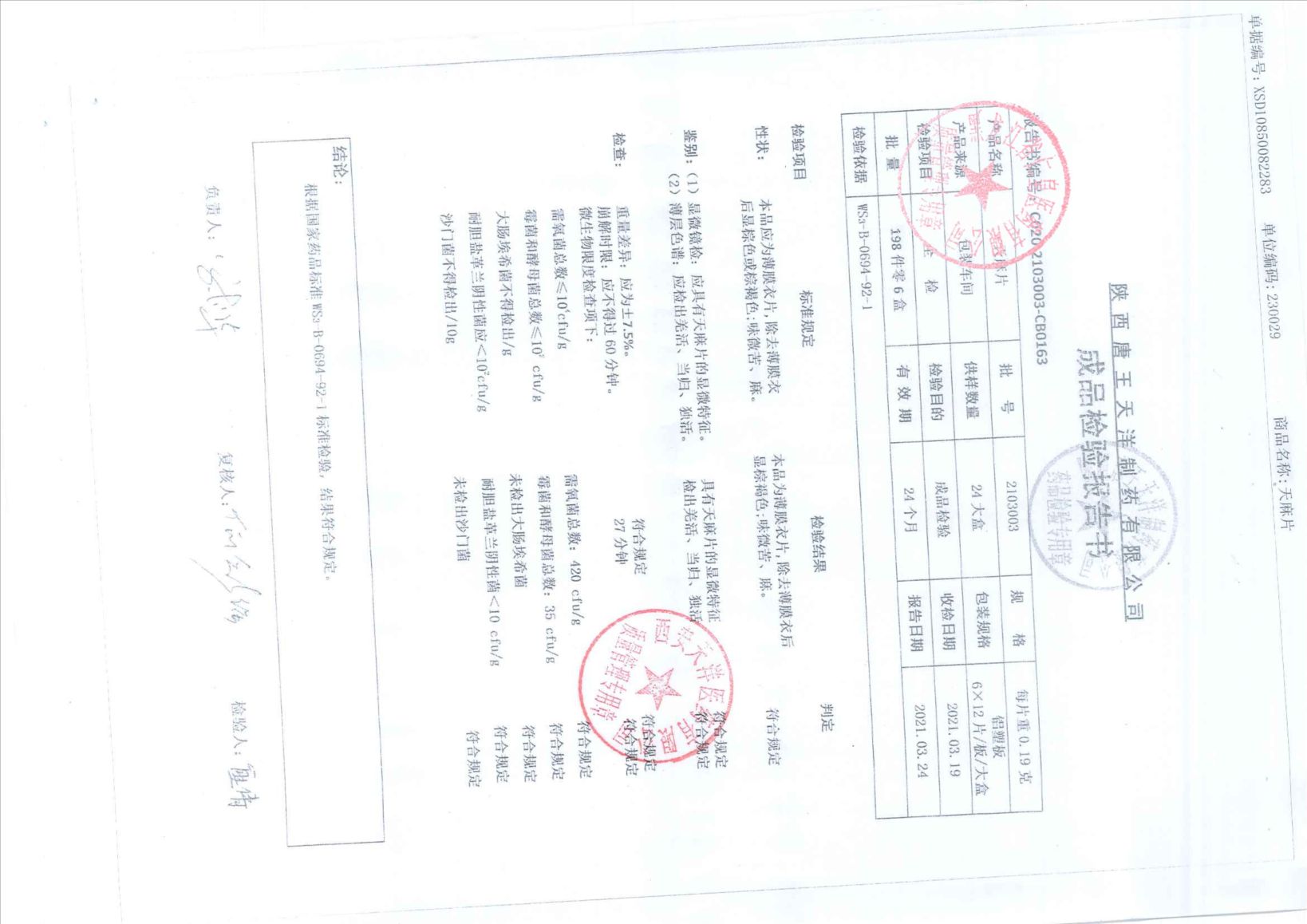 天麻片2103003
