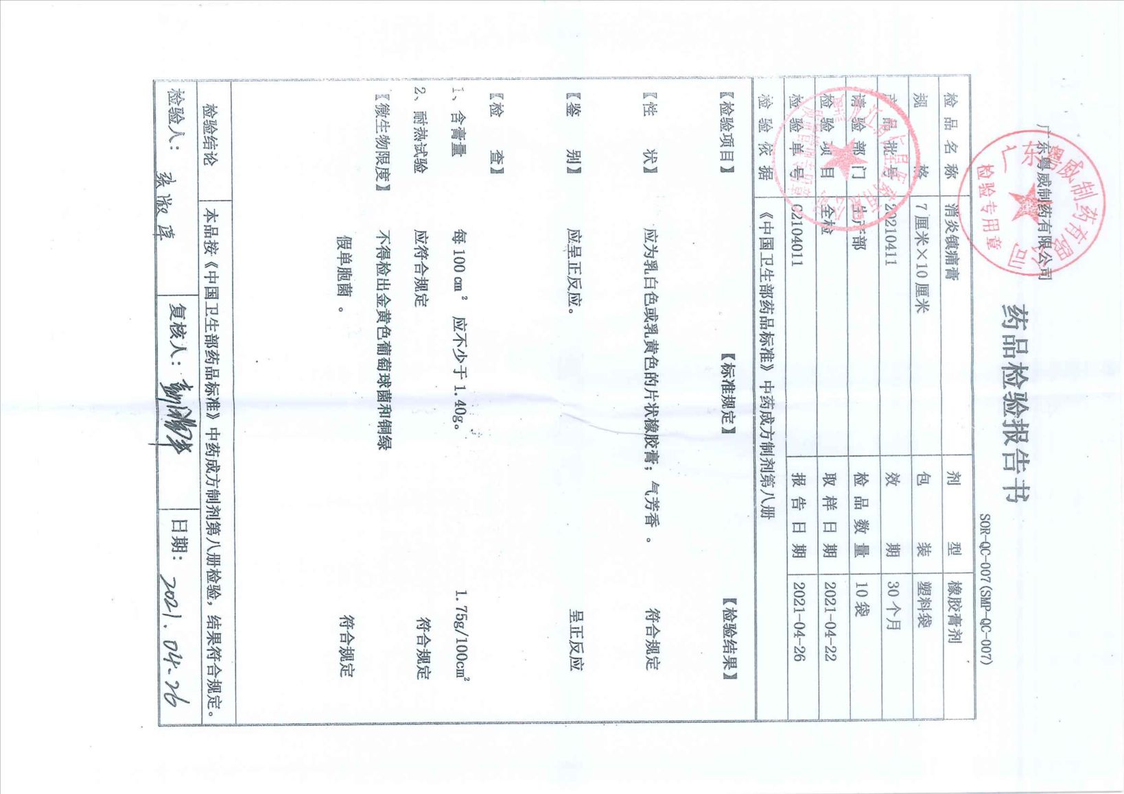 消炎鎮(zhèn)痛膏20210