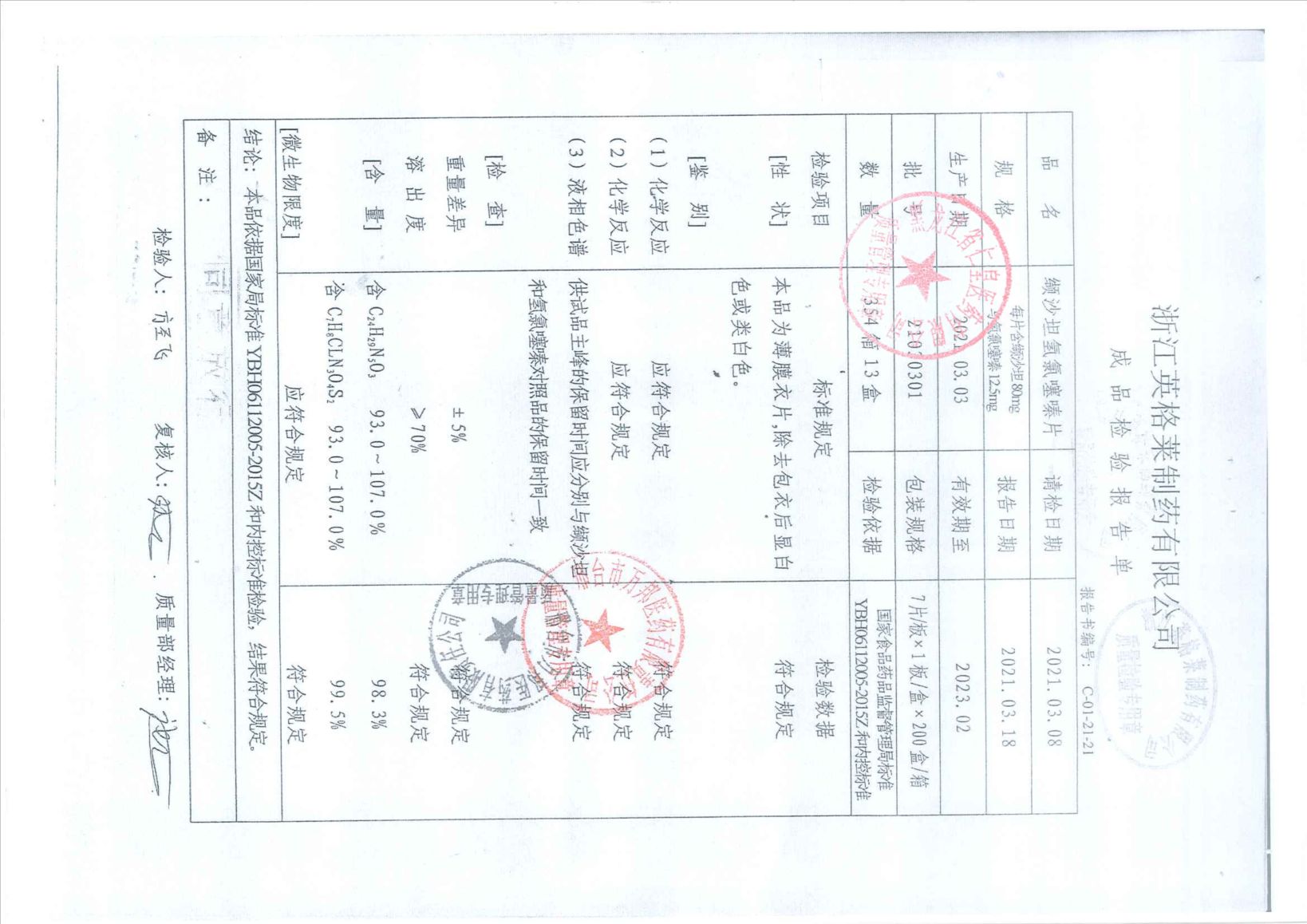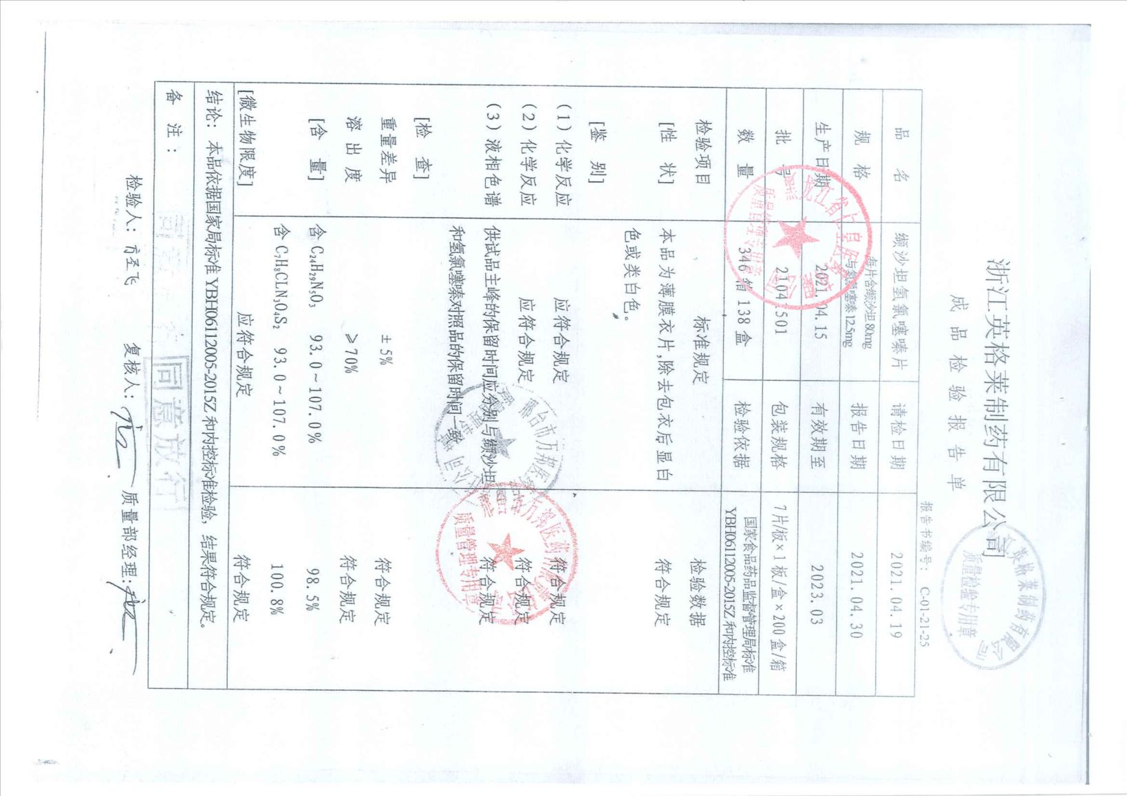 纈沙坦氫氯噻嗪片21