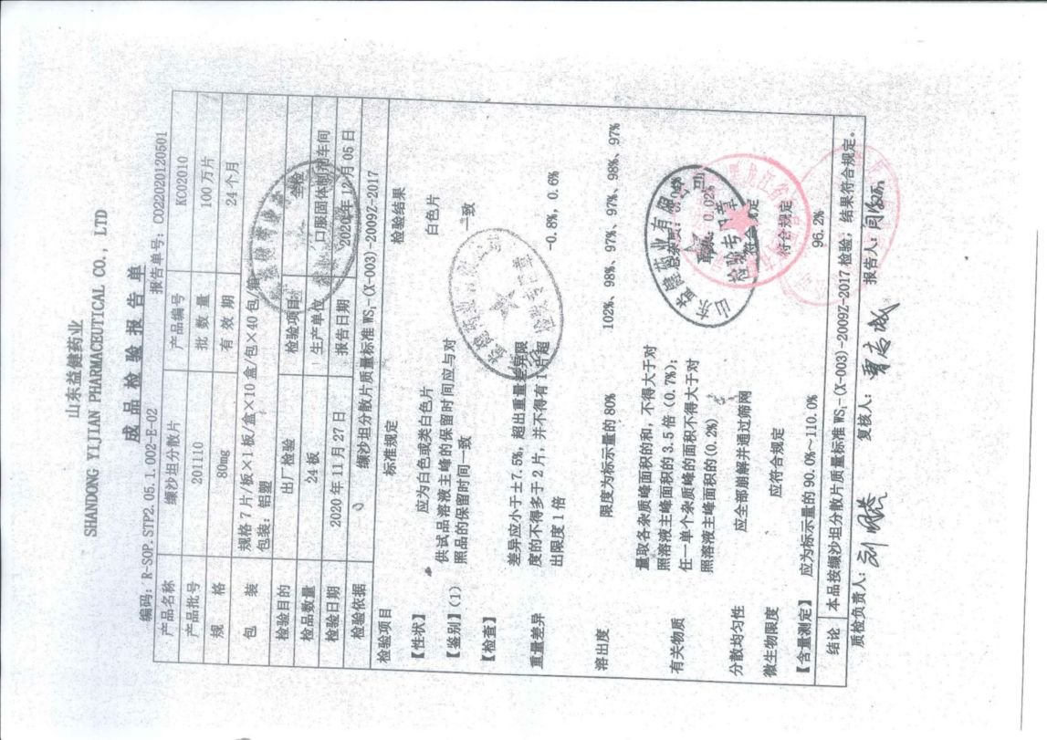 纈沙坦分散片2011