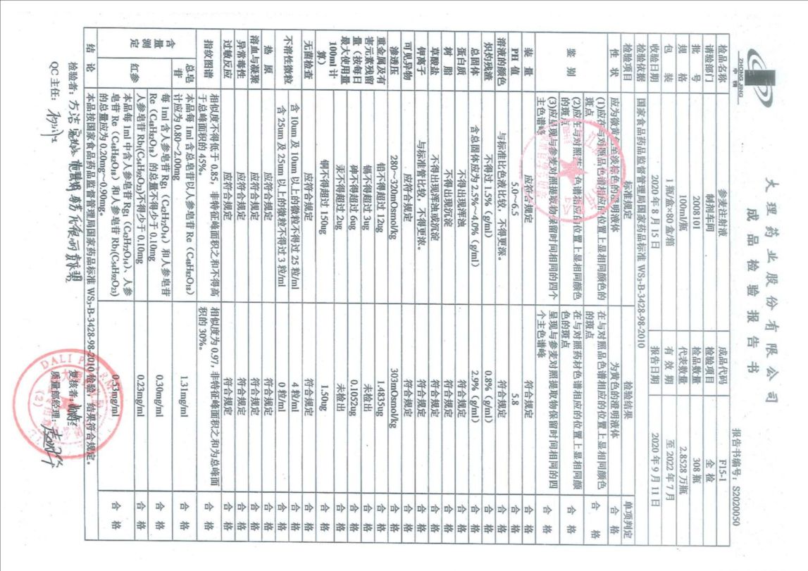 參麥注射液20081
