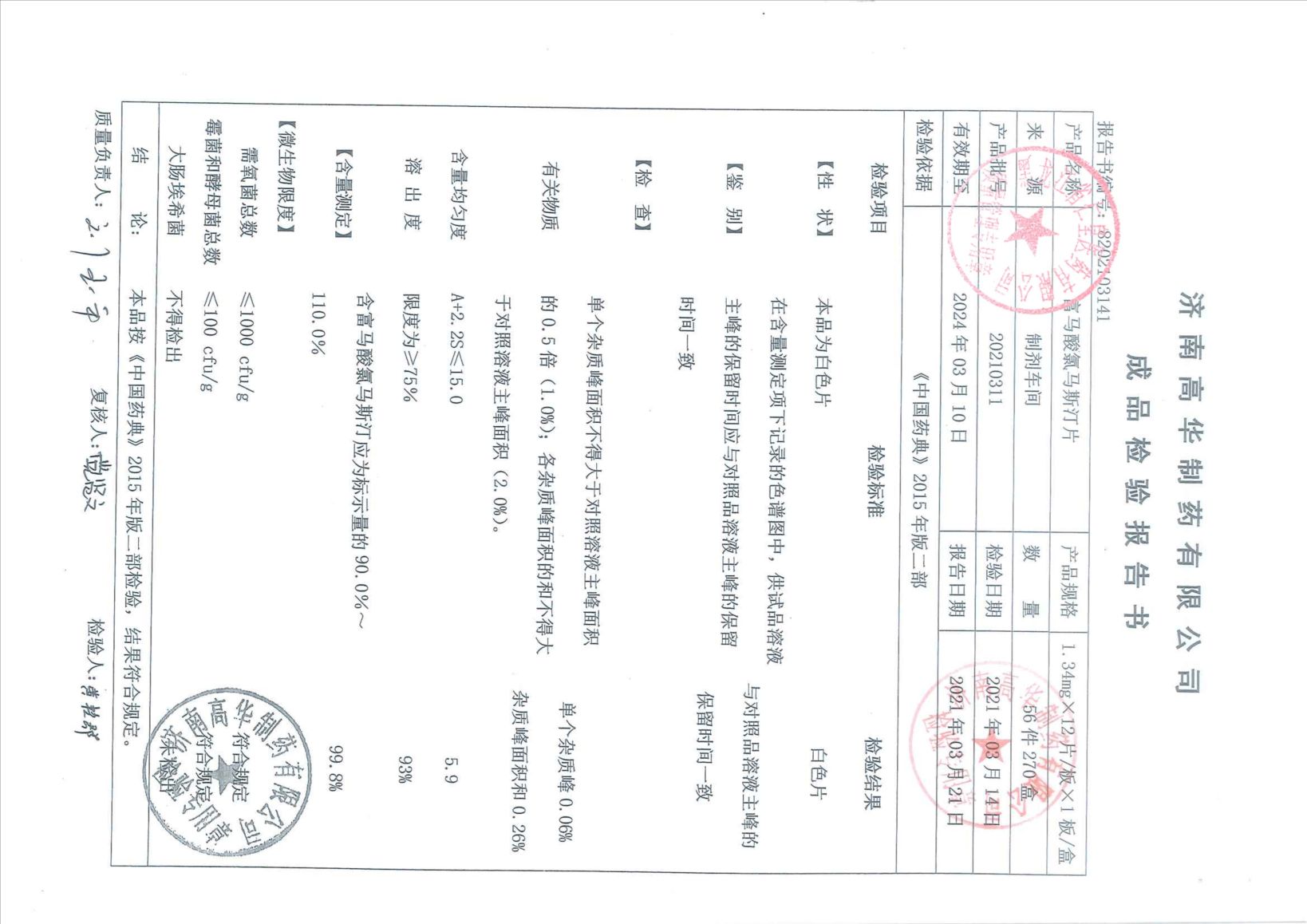 非那雄胺片21020