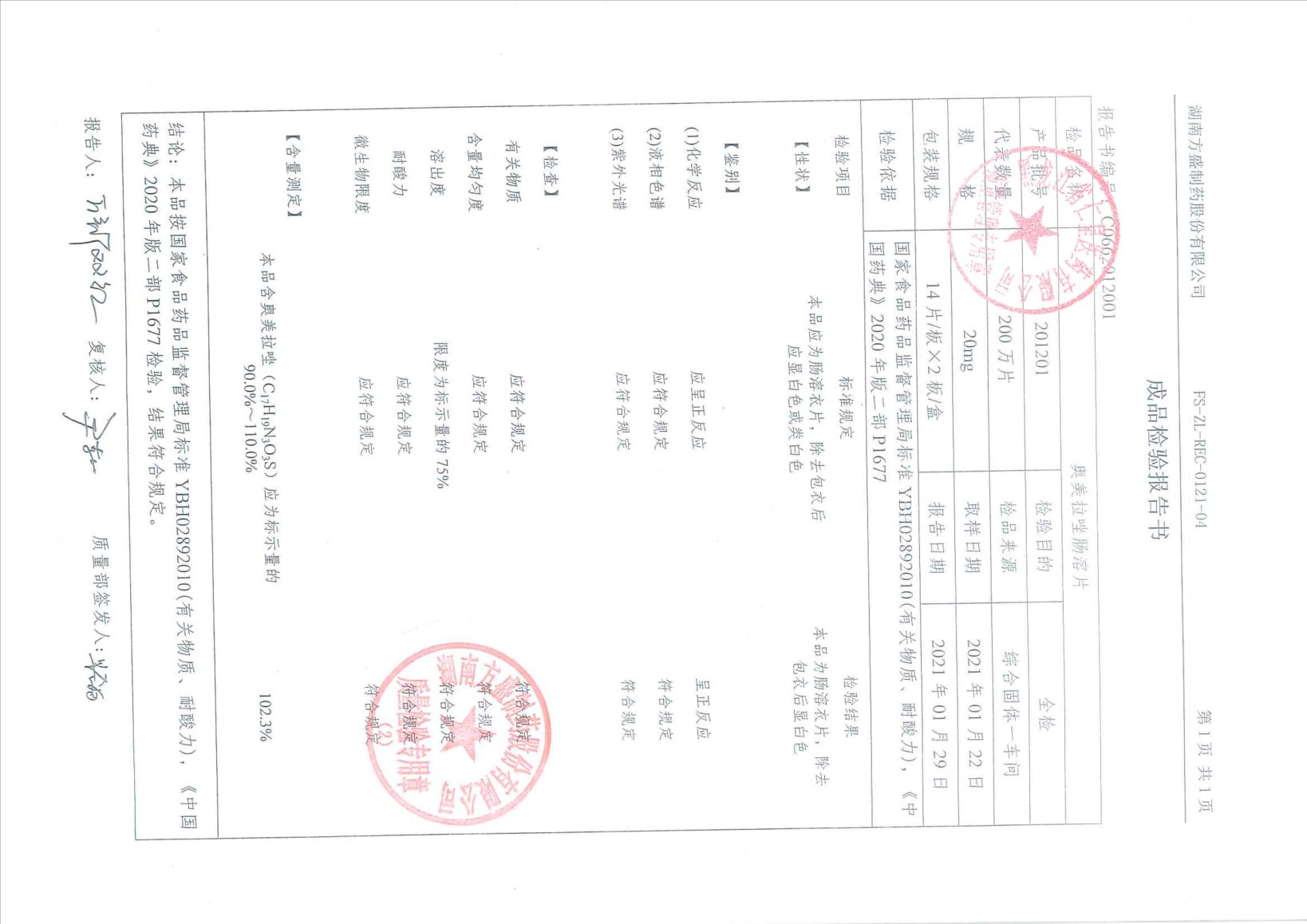 奧美拉唑腸溶片201