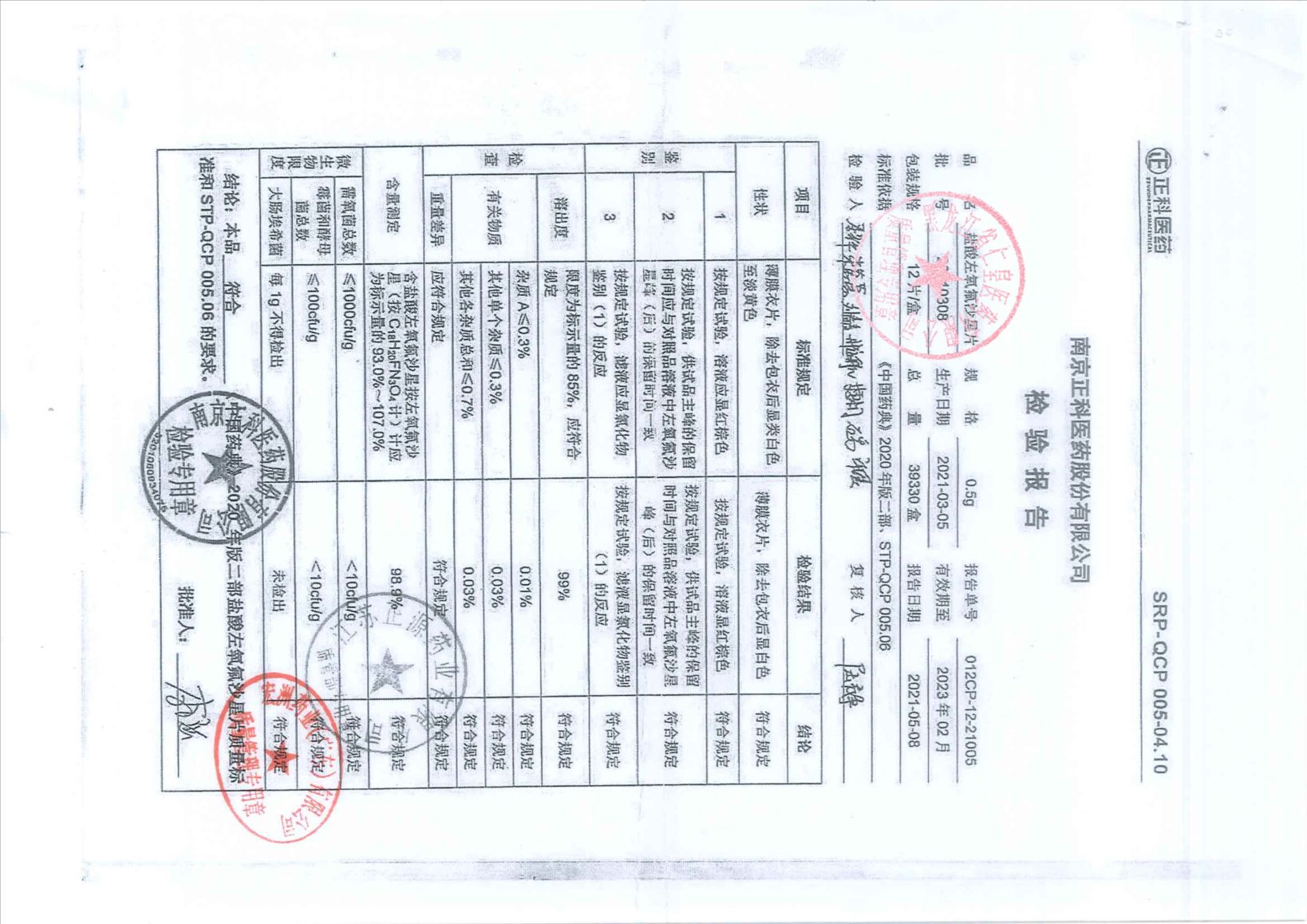 鹽酸左氧氟沙星片20