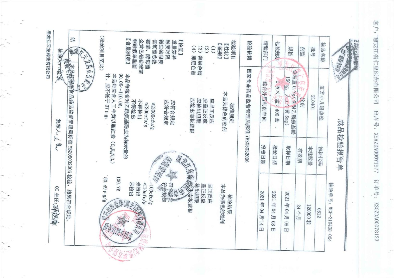 復(fù)方小兒退熱栓210