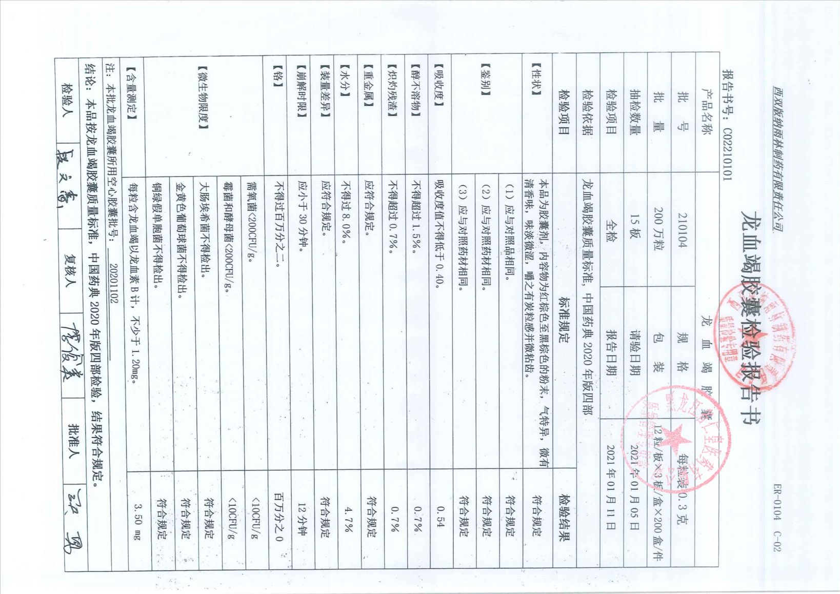 龍血竭膠囊21010