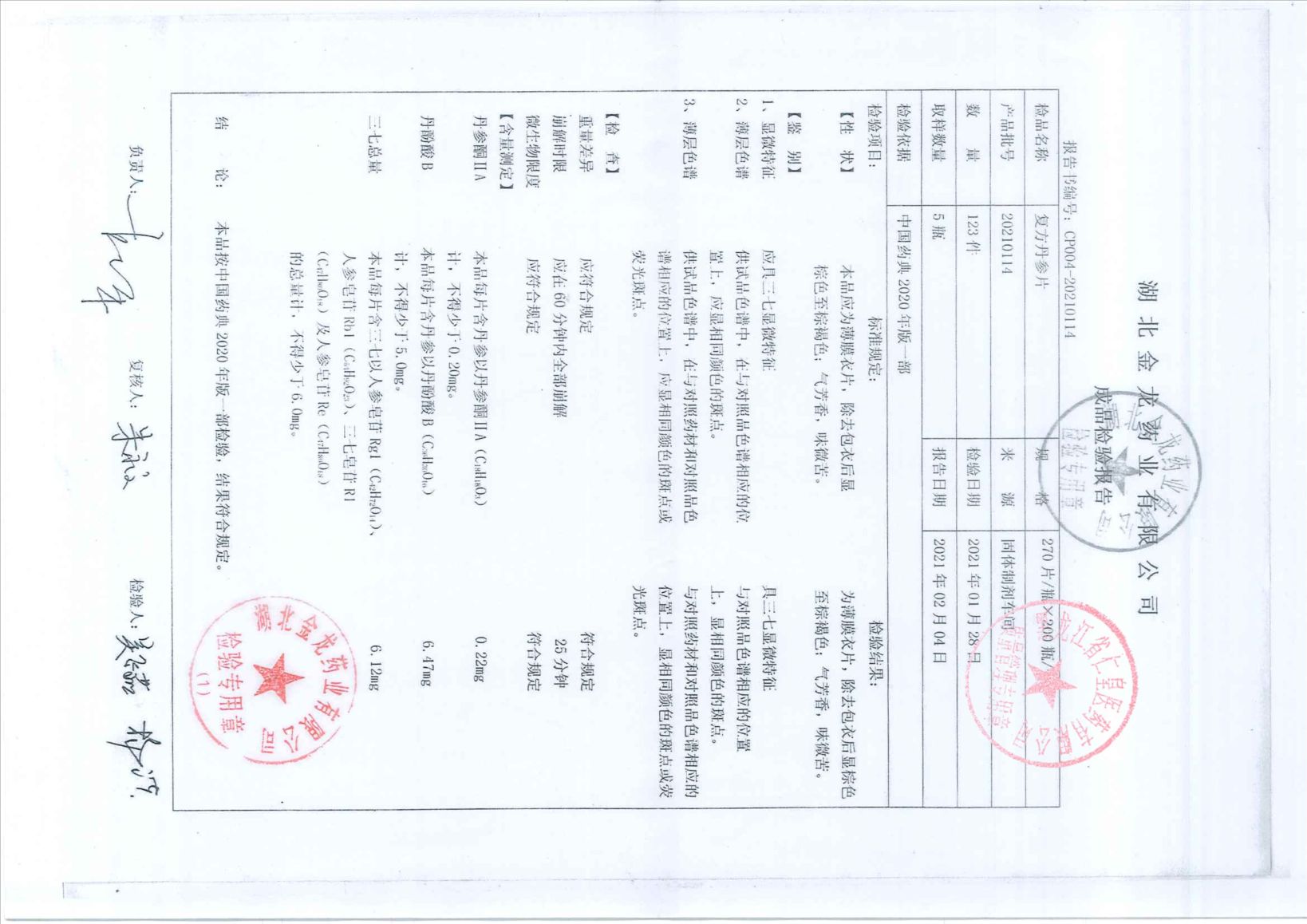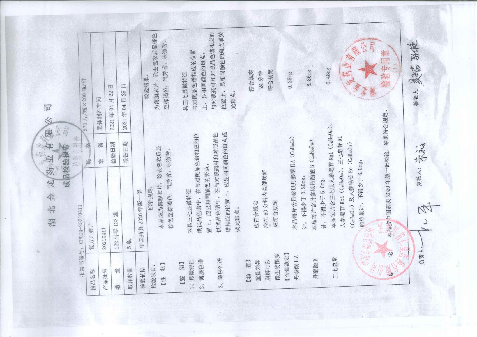 復(fù)方丹參片20210