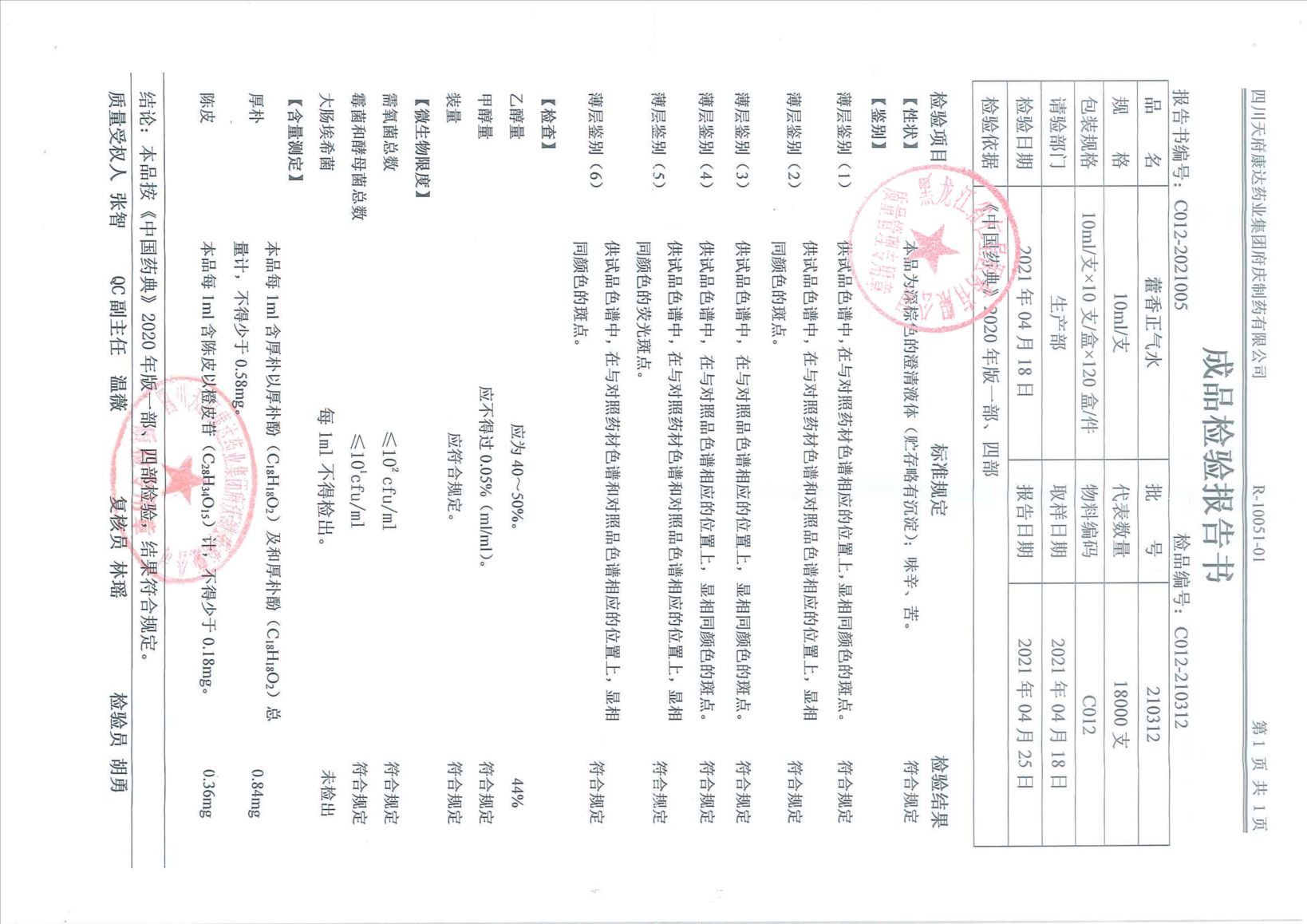 藿香正氣水21031