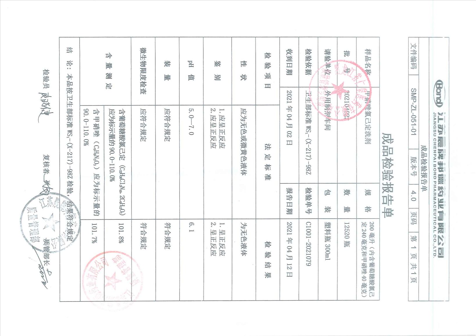 甲硝唑氯己定洗劑20