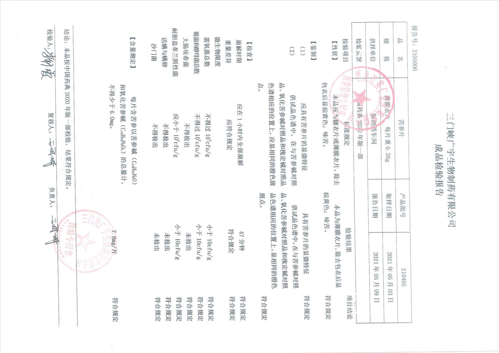 苦參片210405