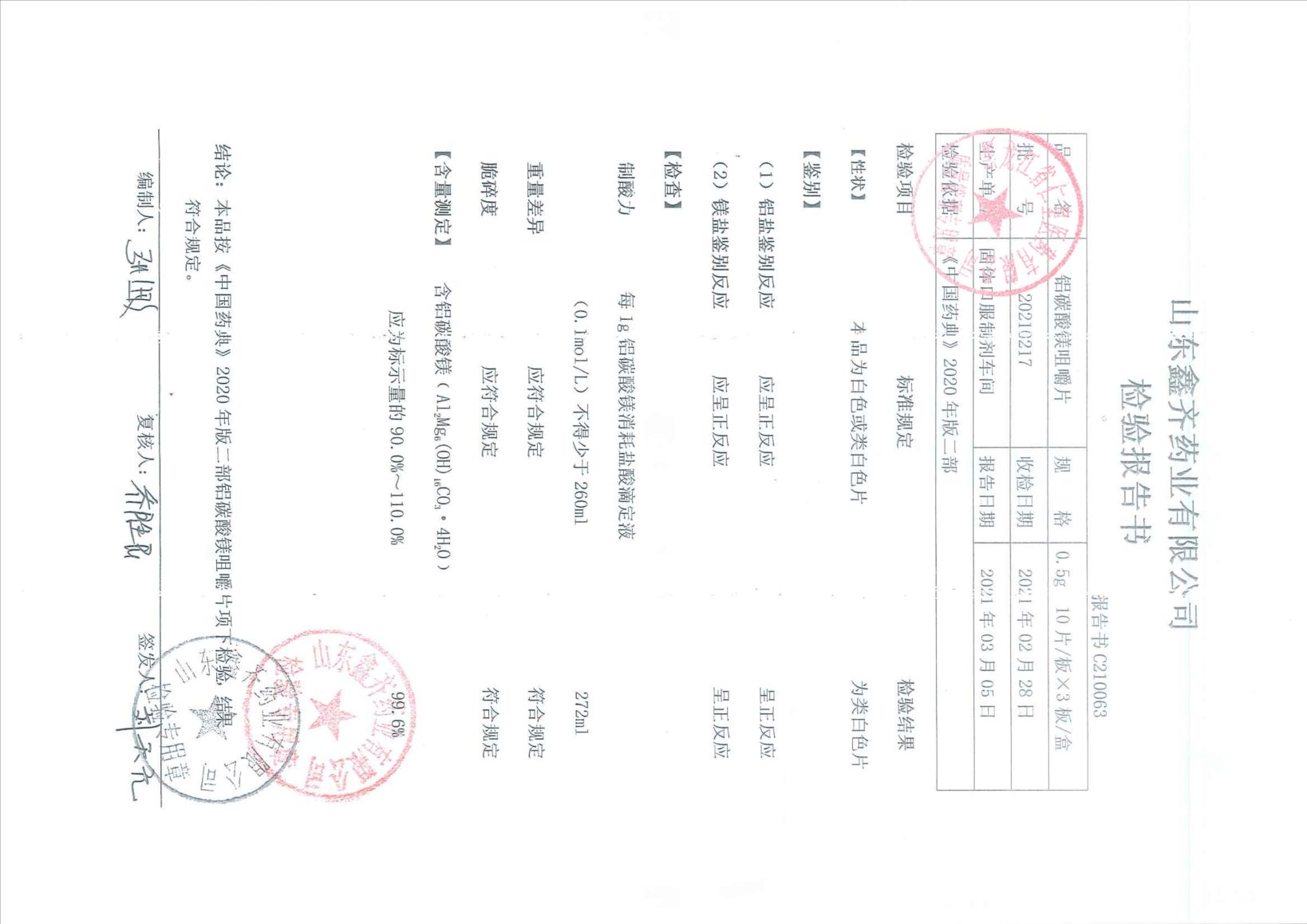 鋁碳酸鎂咀嚼片202