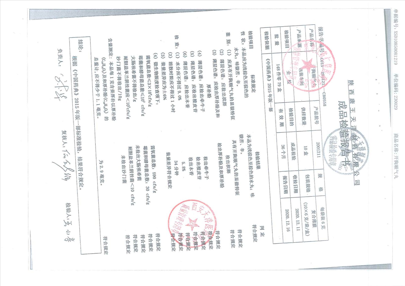 開胸順氣丸20012