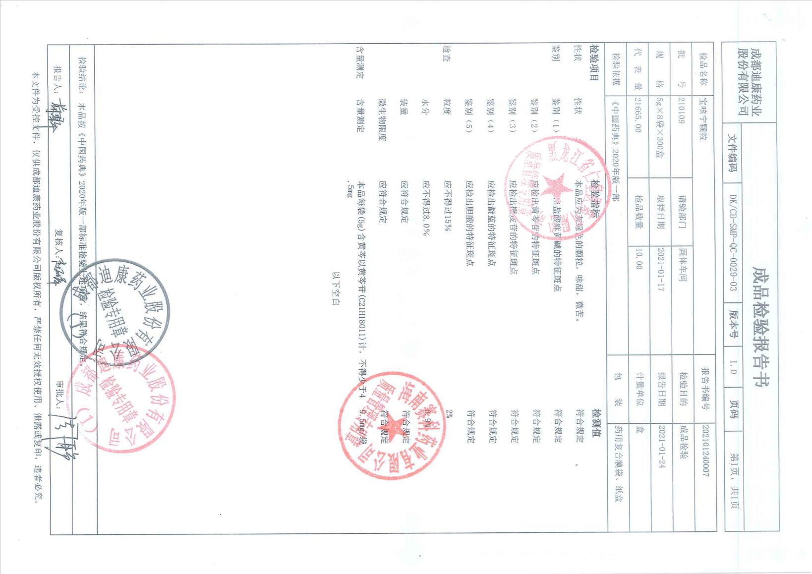 寶咳寧顆粒21010