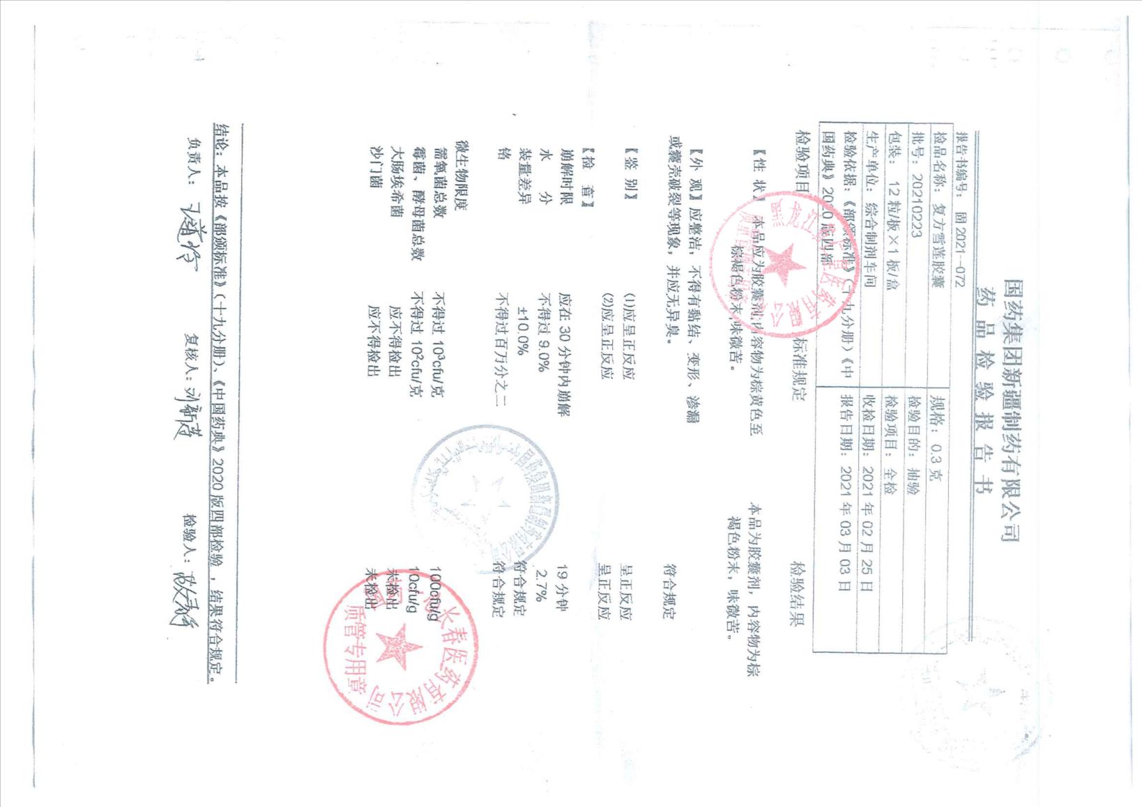 復(fù)方雪蓮膠囊2021
