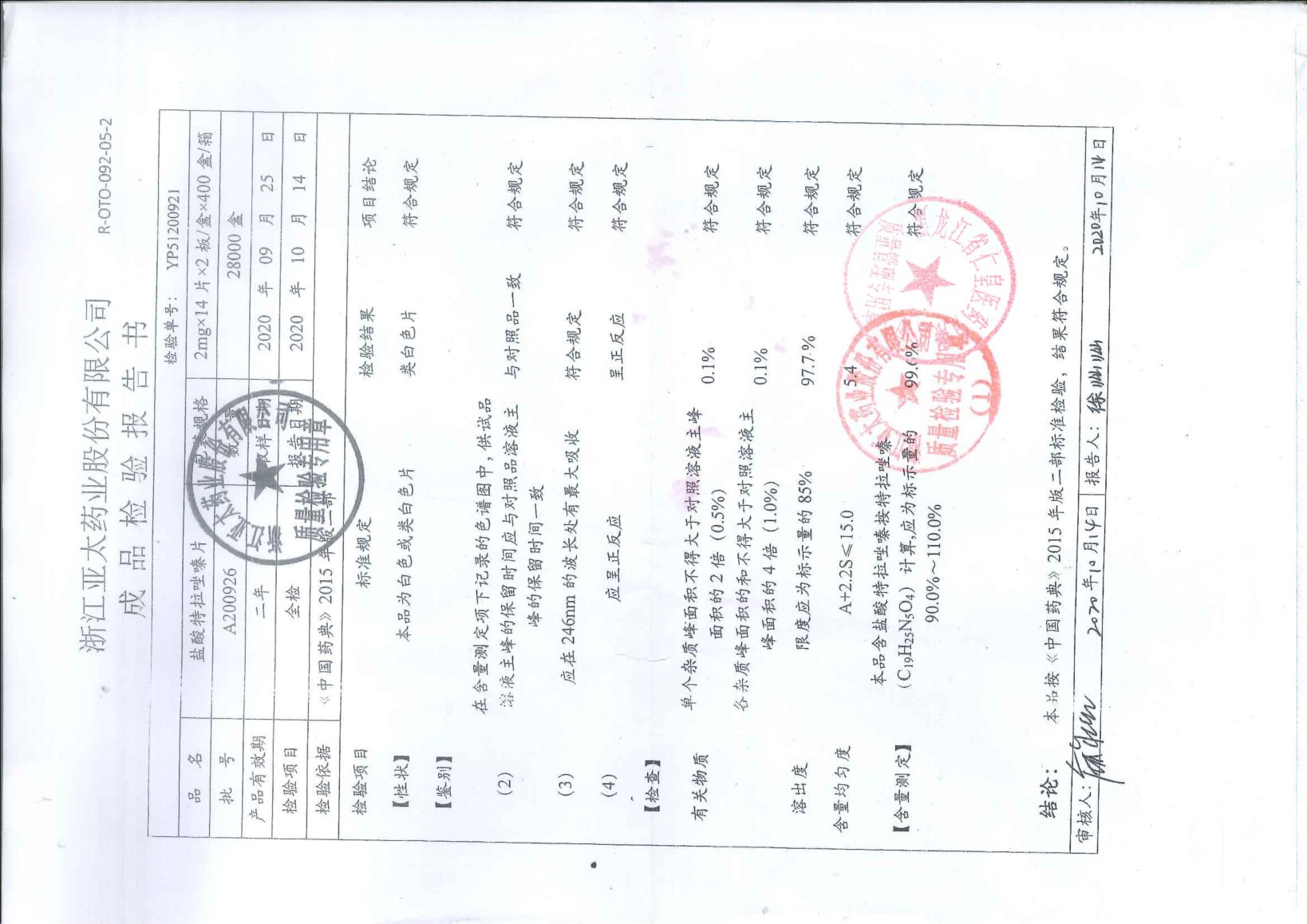 鹽酸特拉唑嗪片A20