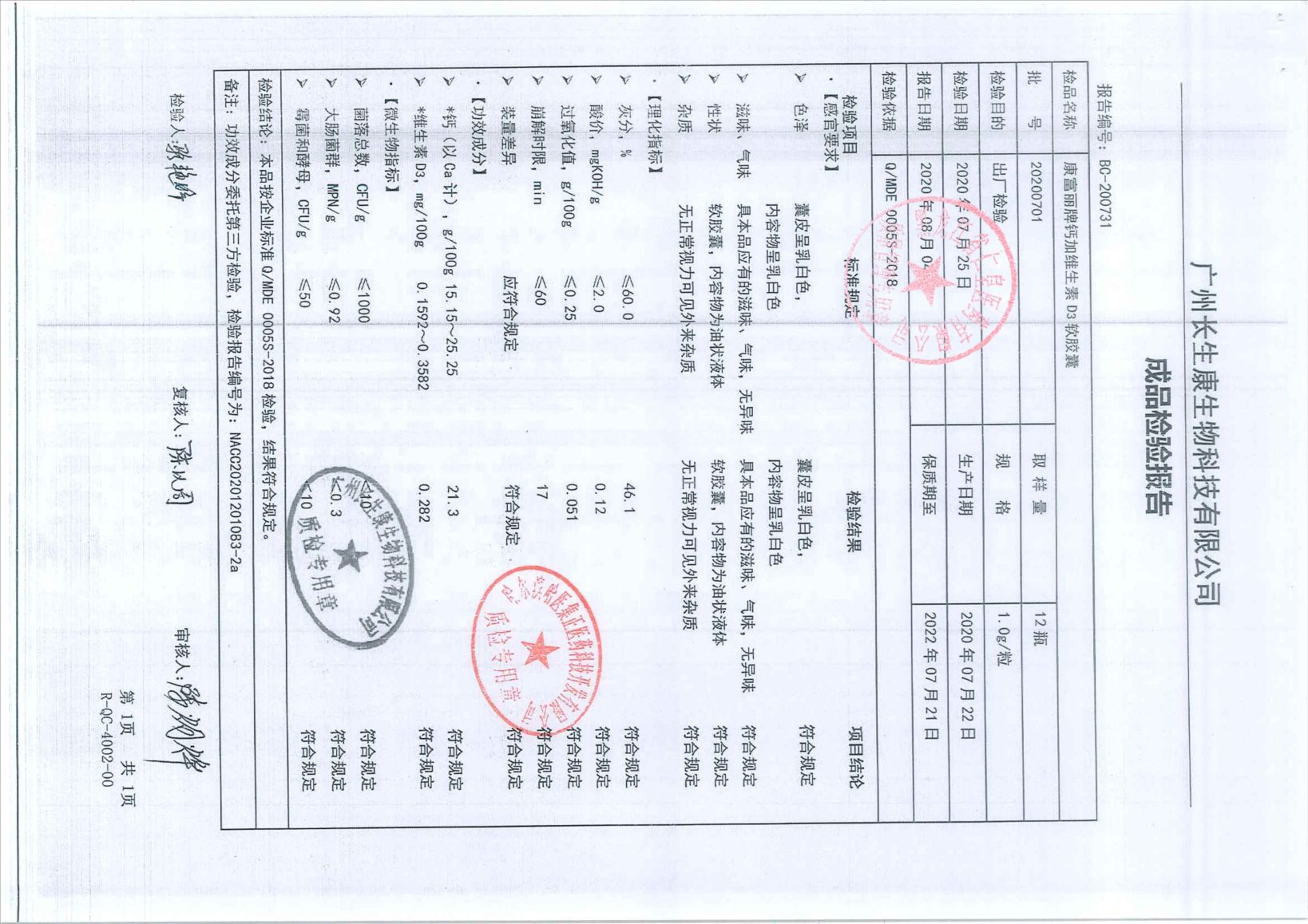 康富麗牌鈣加維生素D