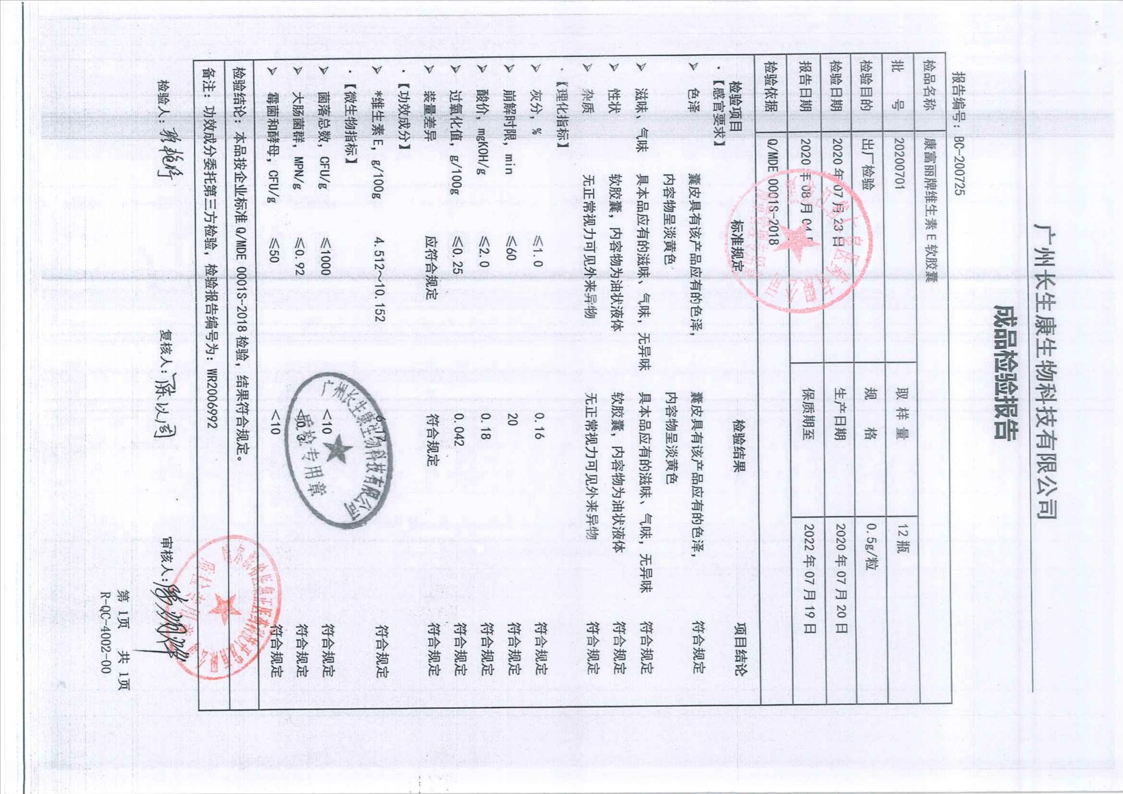 康富麗牌維生素E軟膠
