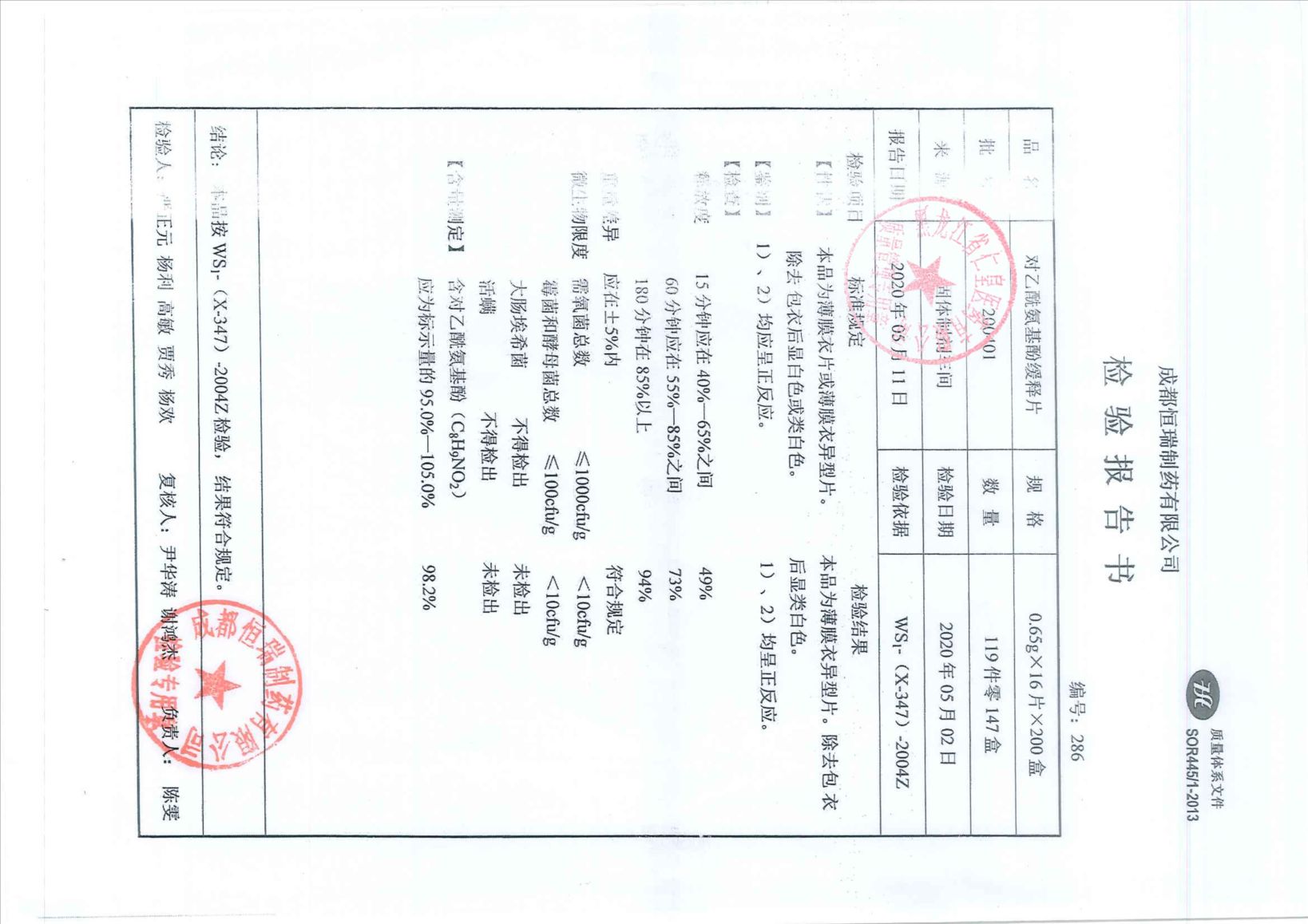 對(duì)乙酰氨基酚緩釋片2