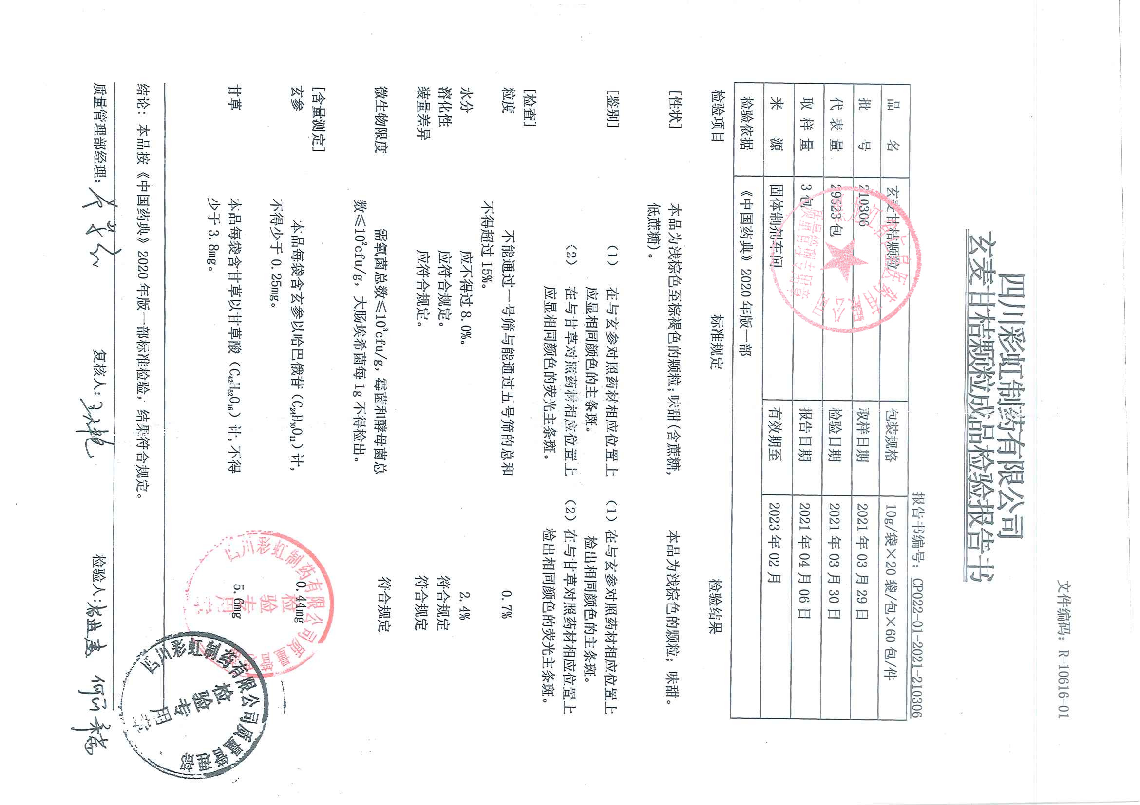 玄麥甘桔顆粒2103