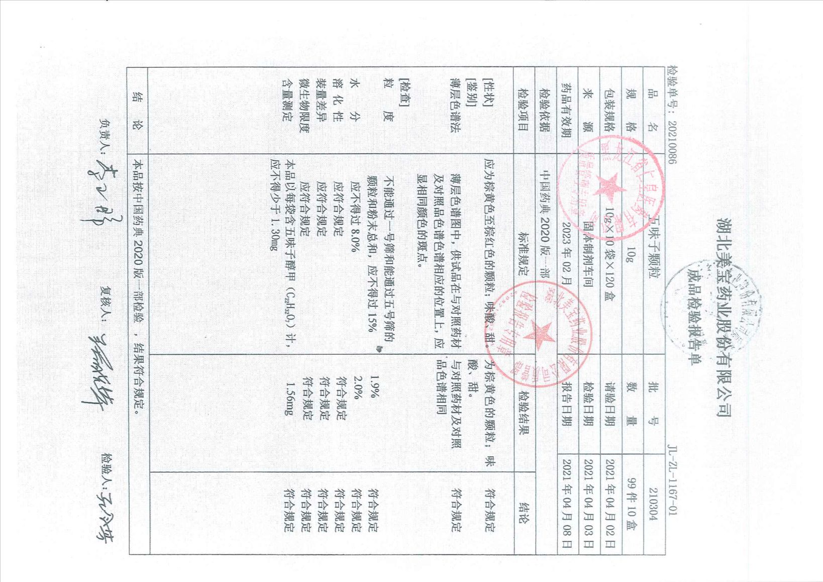 五味子顆粒21030