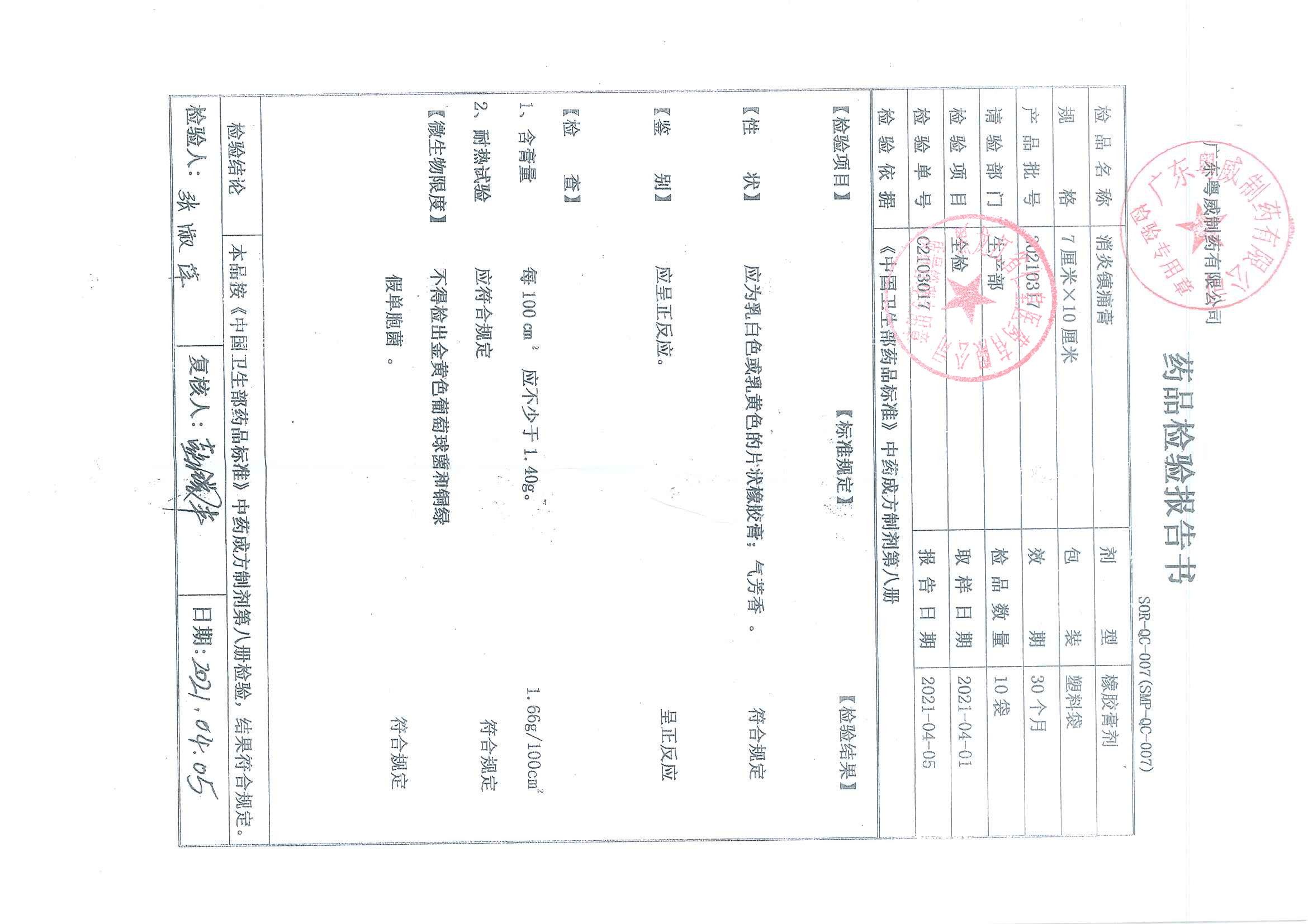 消炎鎮(zhèn)痛膏20210