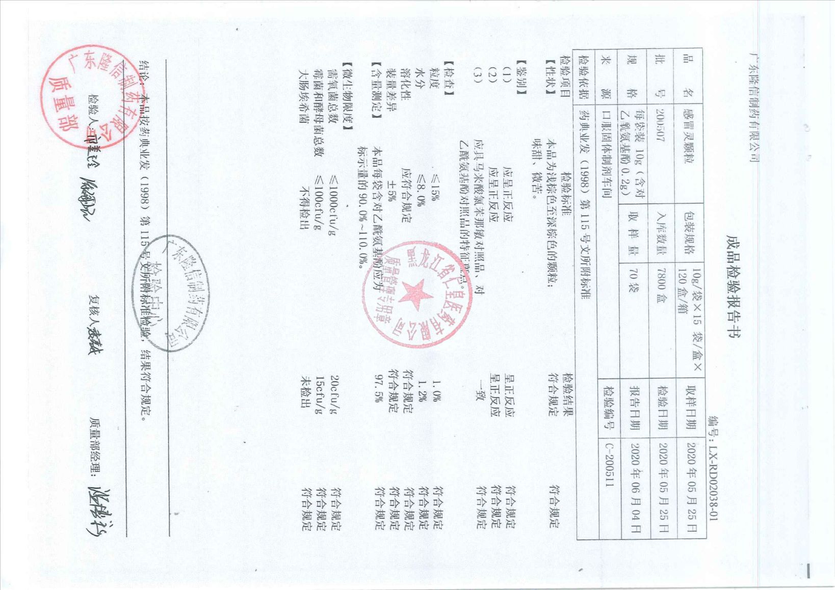_感冒靈顆粒2005