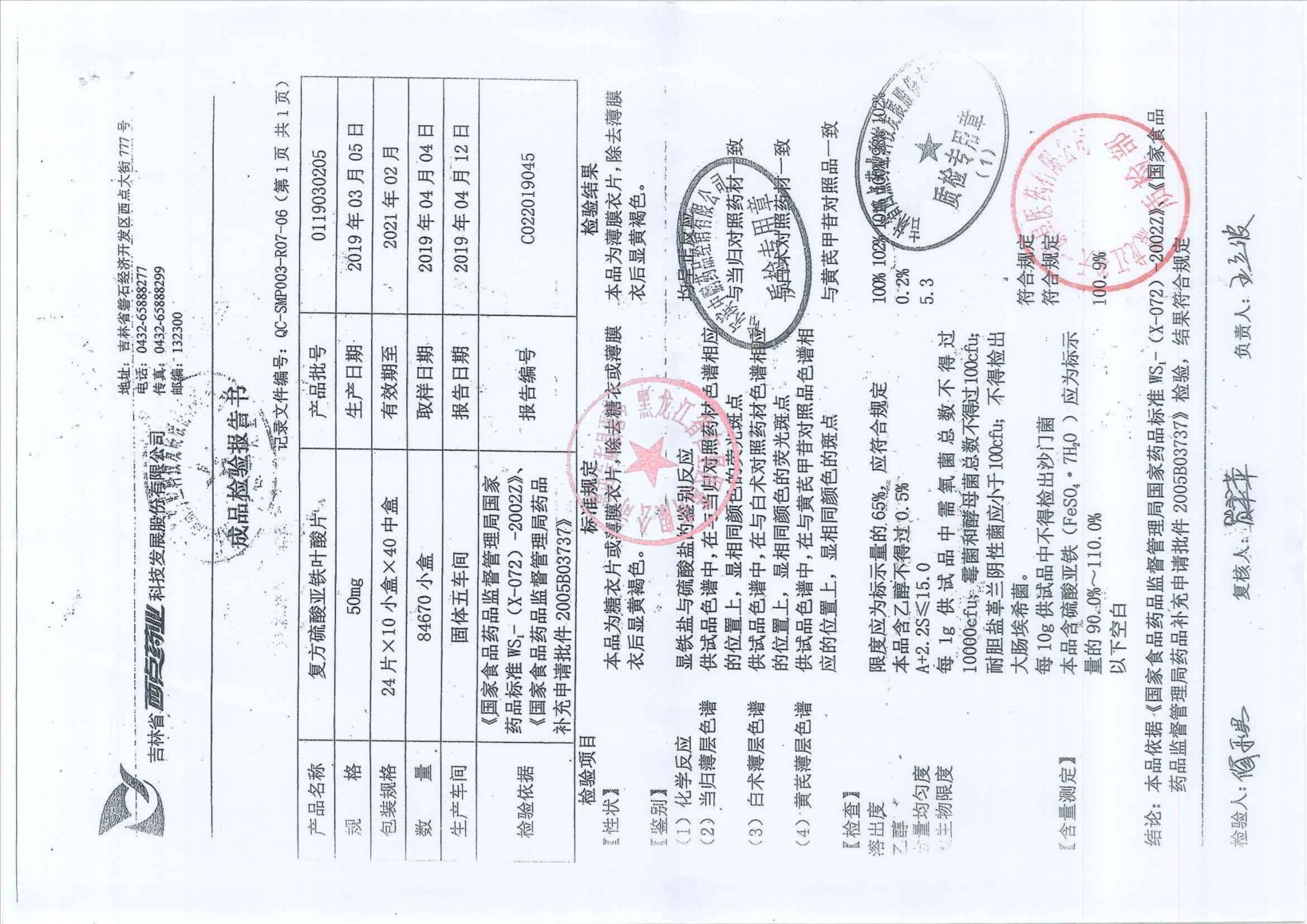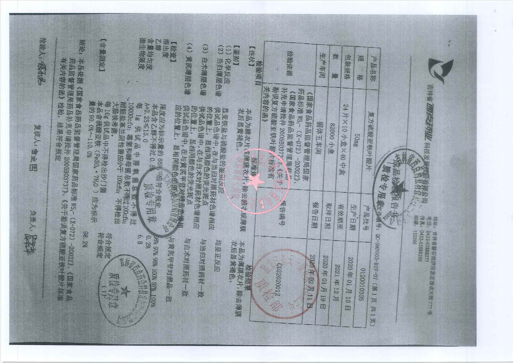 _復(fù)方硫酸亞鐵葉酸片