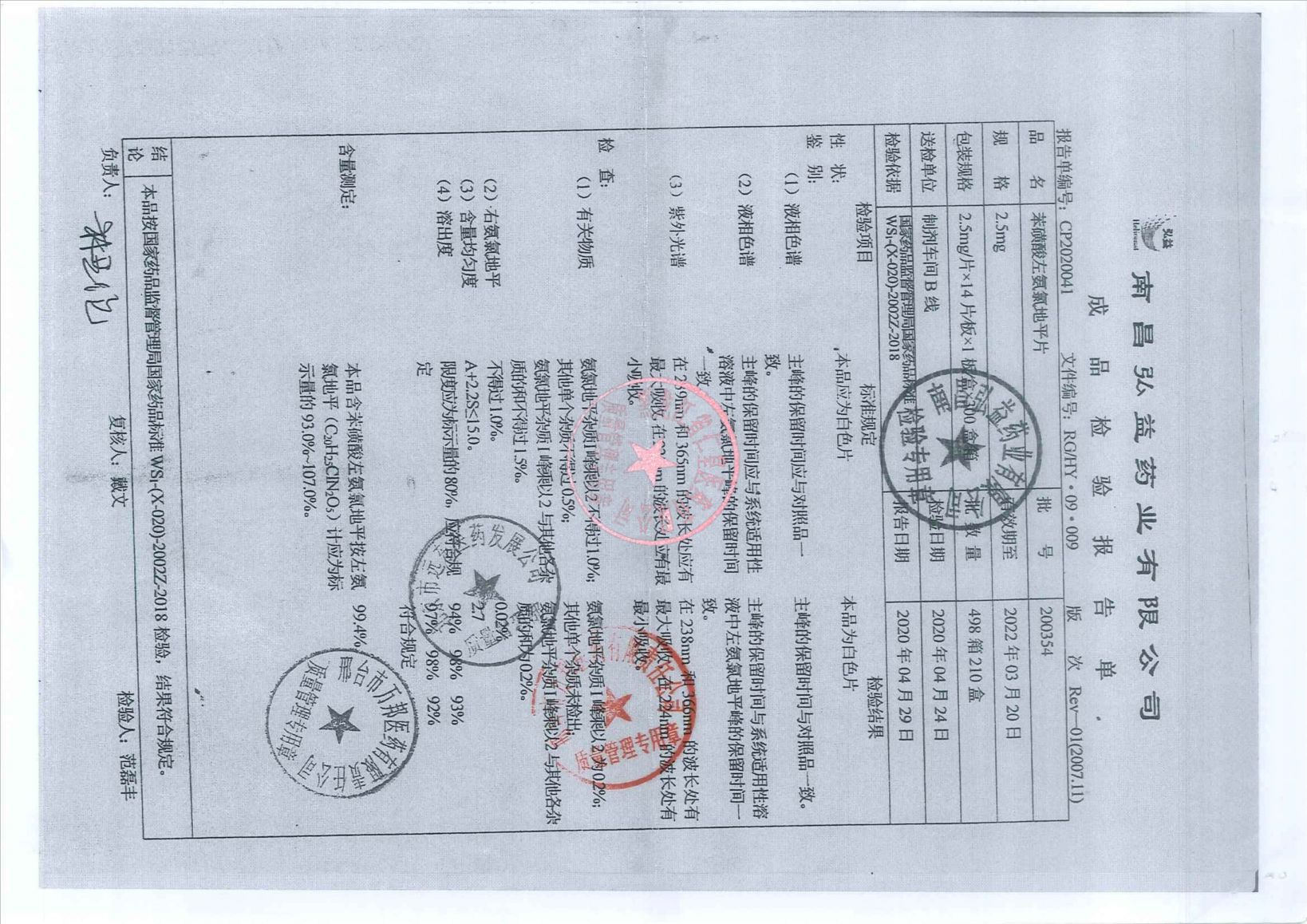 _苯磺酸左氨氯地平片