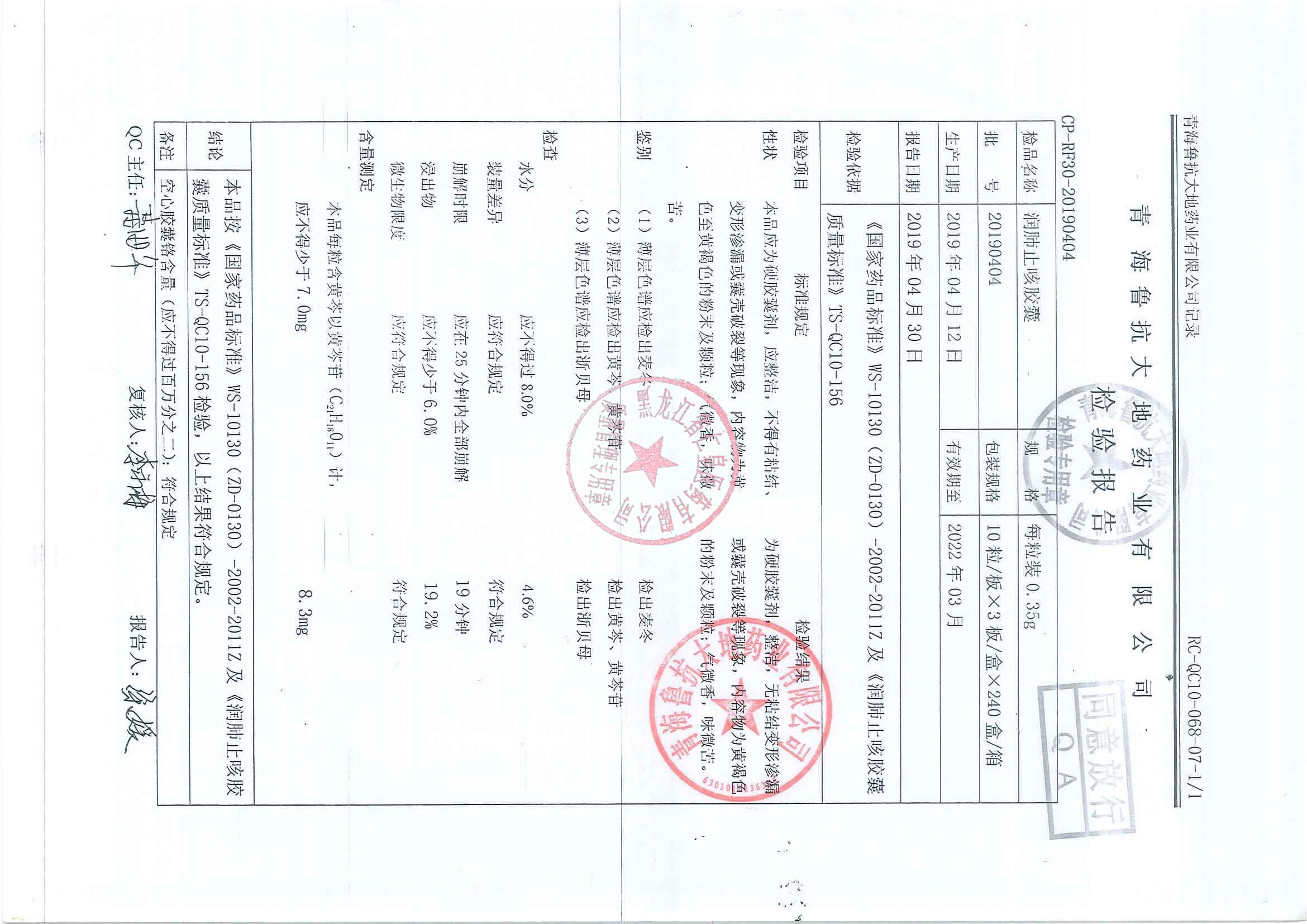_潤肺止咳膠囊201