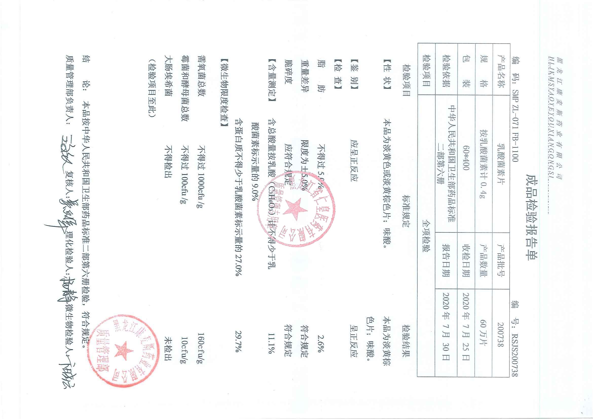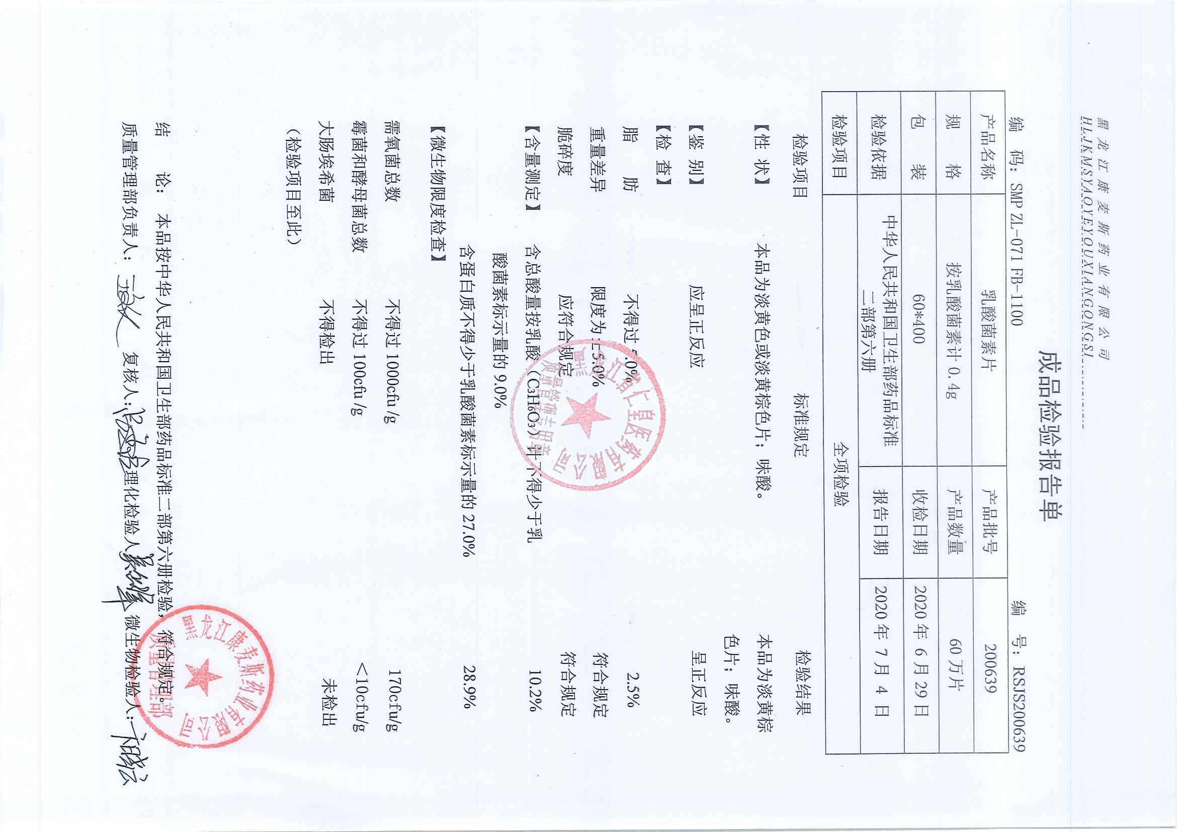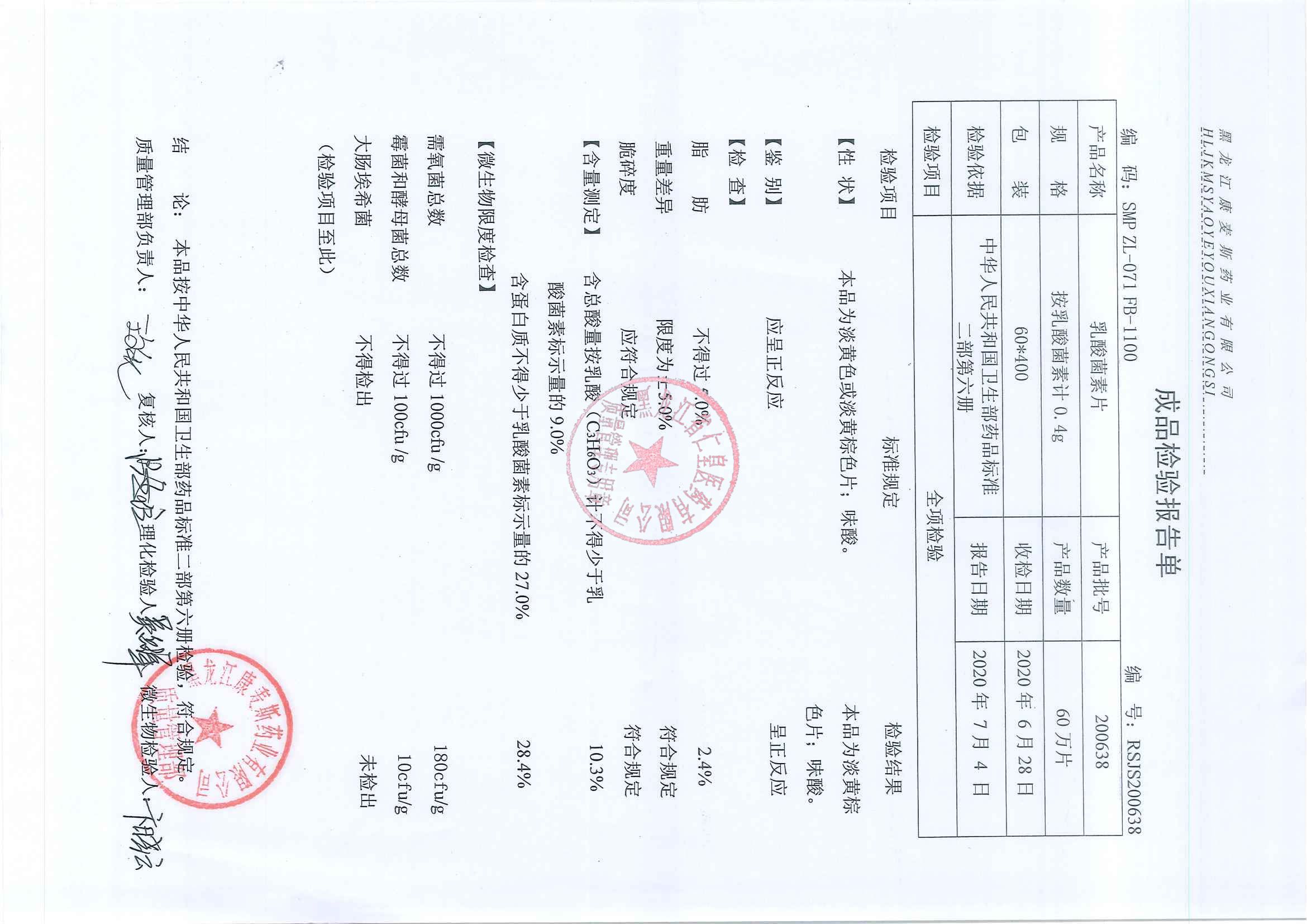 _乳酸菌素片2007