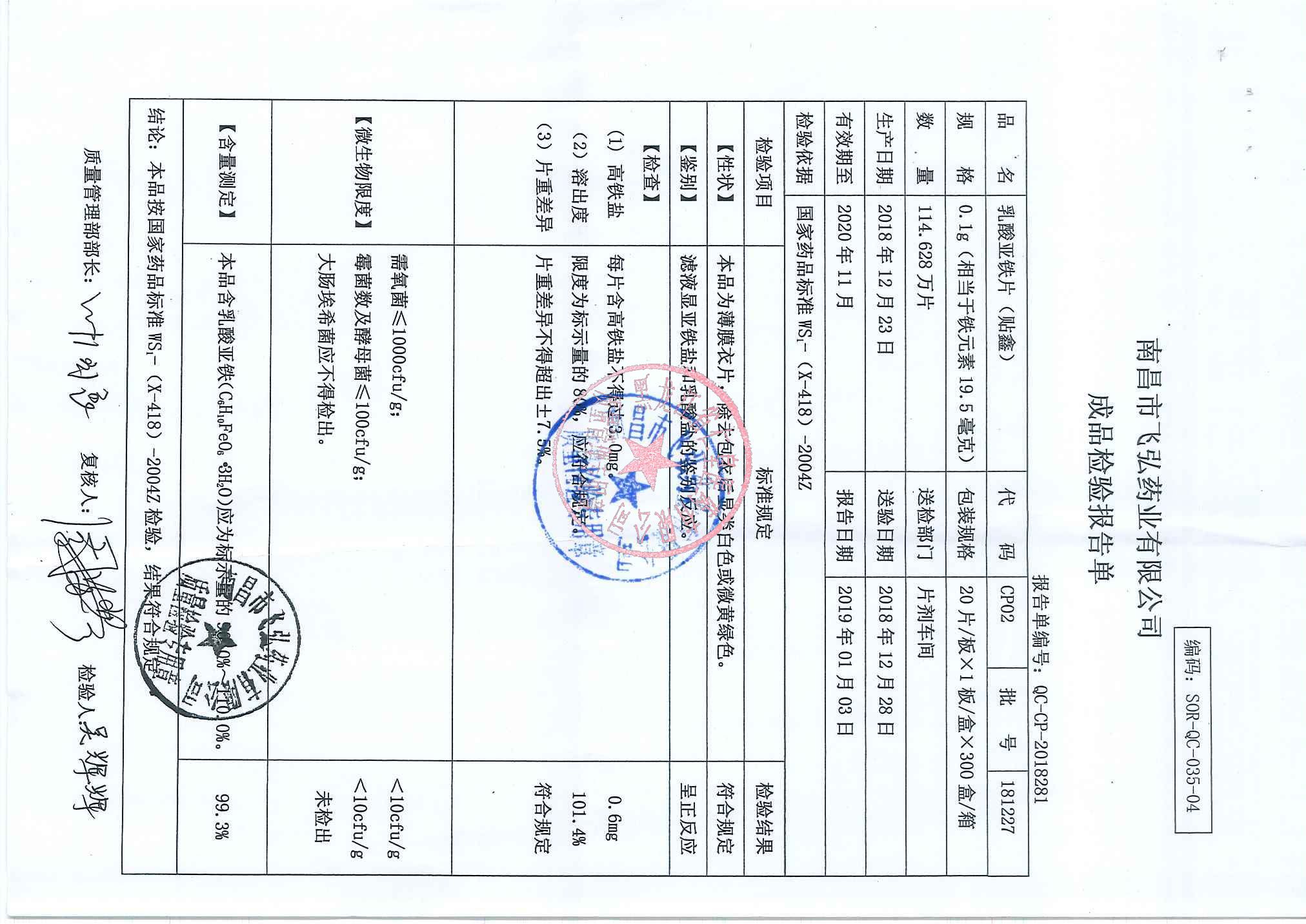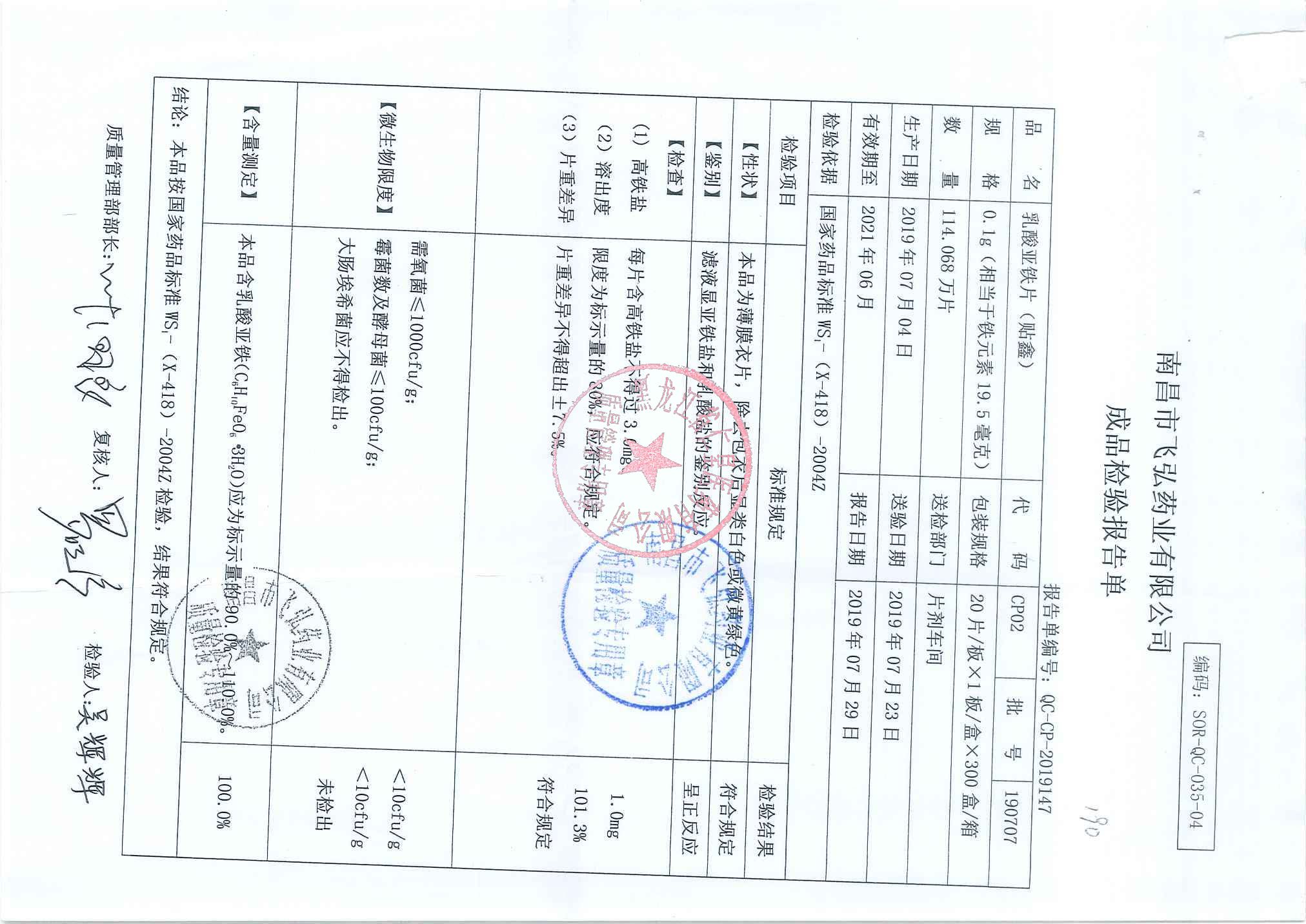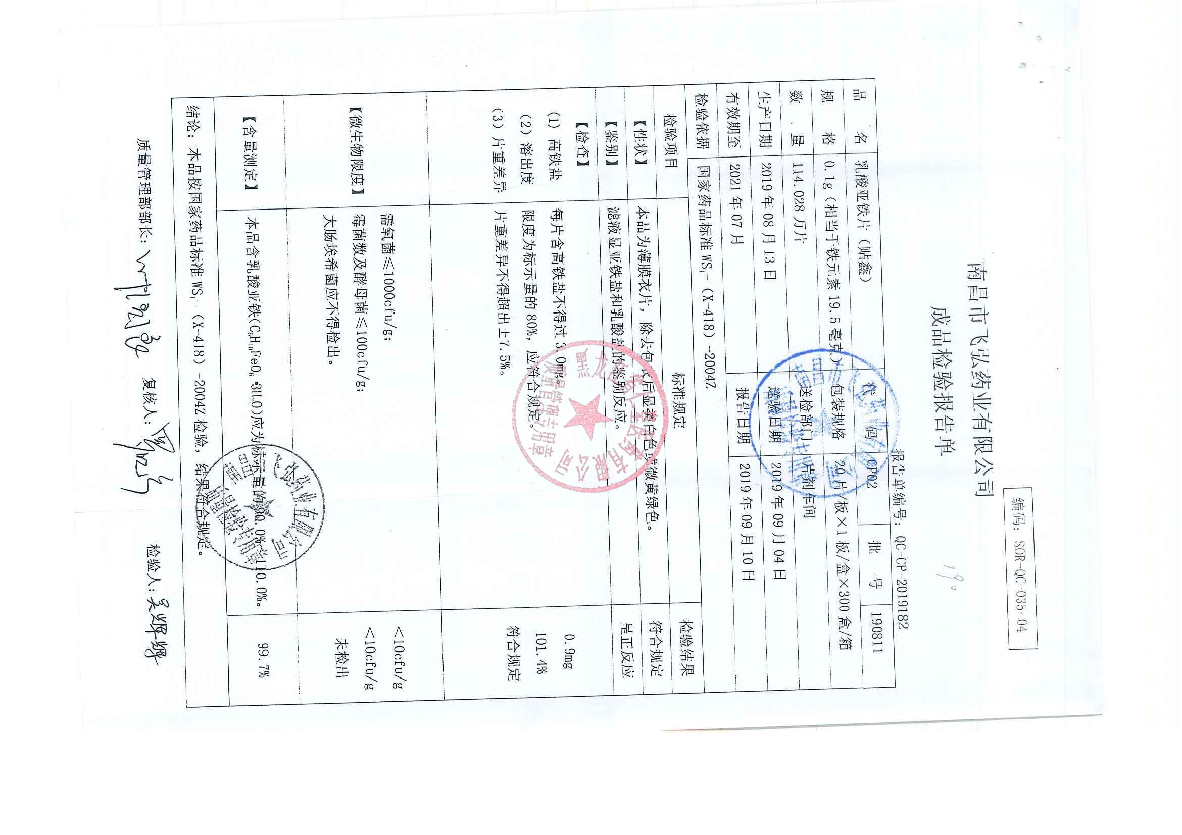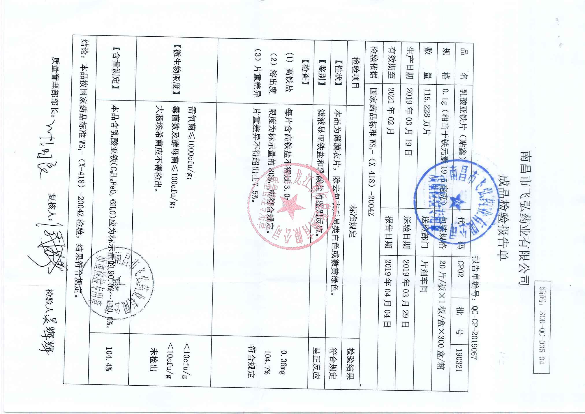 _乳酸亞鐵片1904