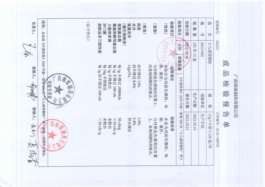 小兒感冒顆粒2022