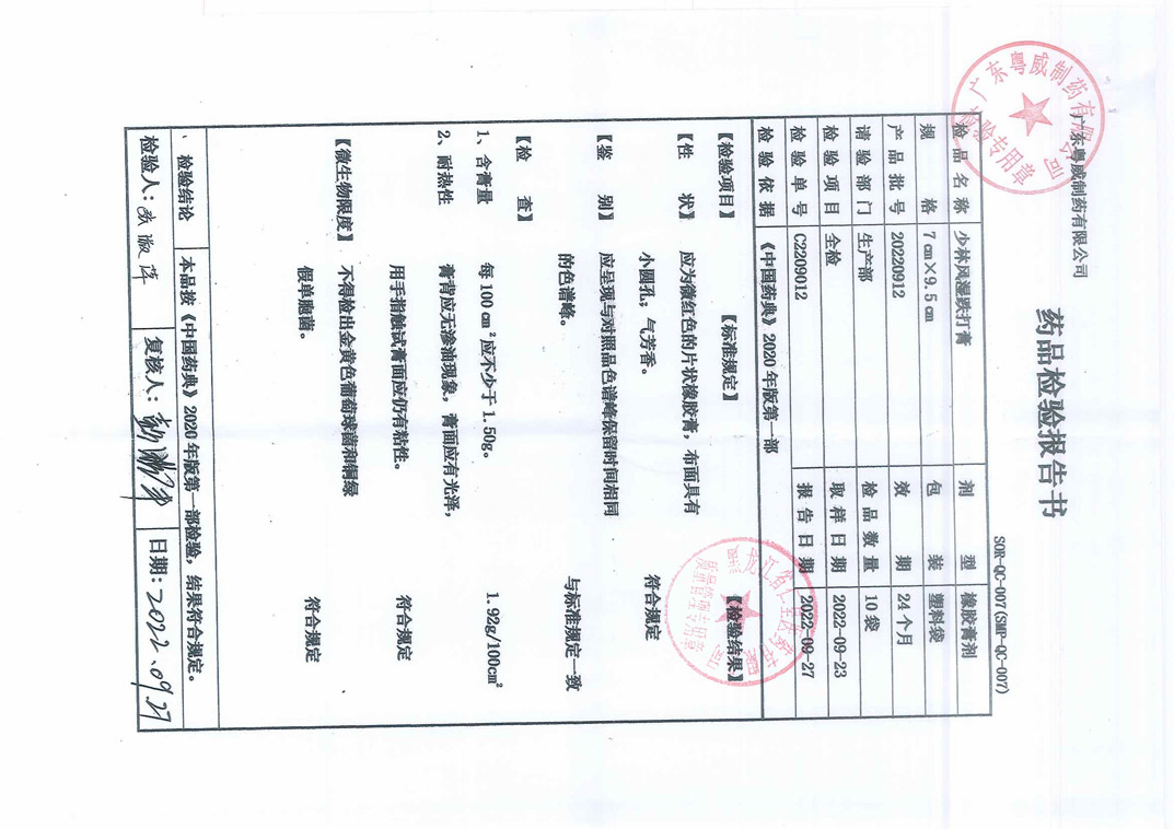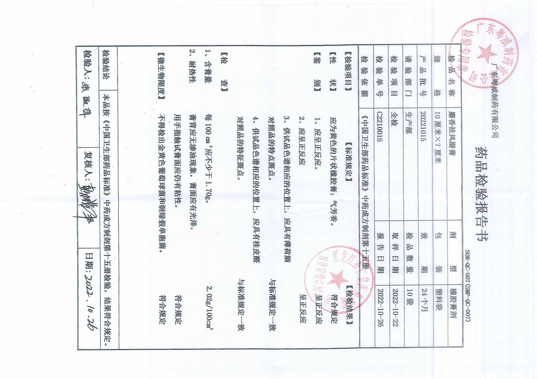 麝香祛風(fēng)濕膏2022