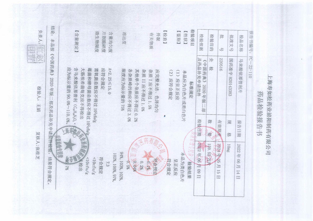 馬來酸依那普利片22