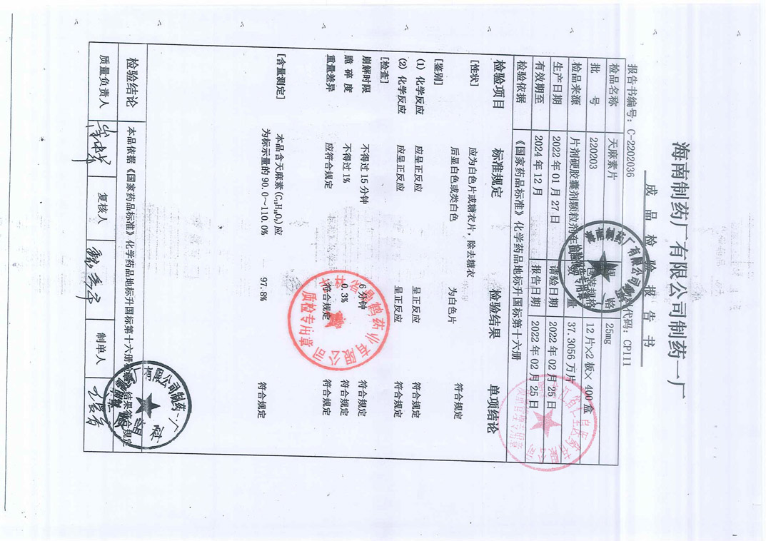 天麻素片220203
