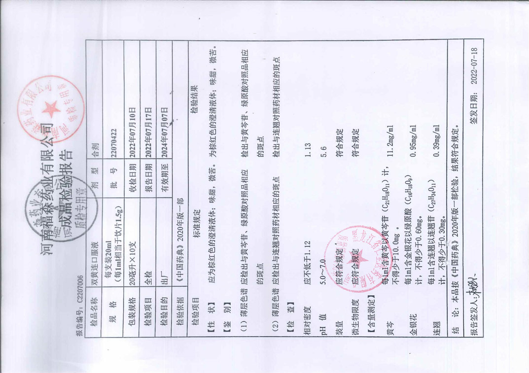 雙黃連口服液2207