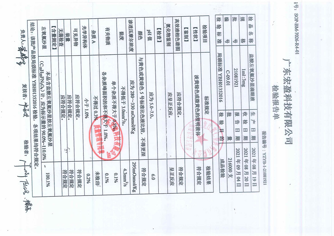 鹽酸左氧氟沙星滴眼液