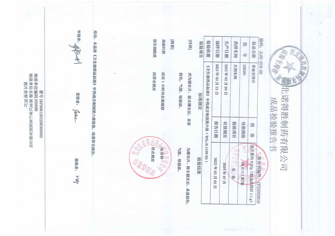 養(yǎng)血安神片22020