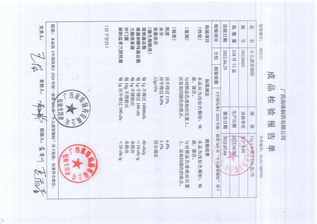 小兒感冒顆粒2022