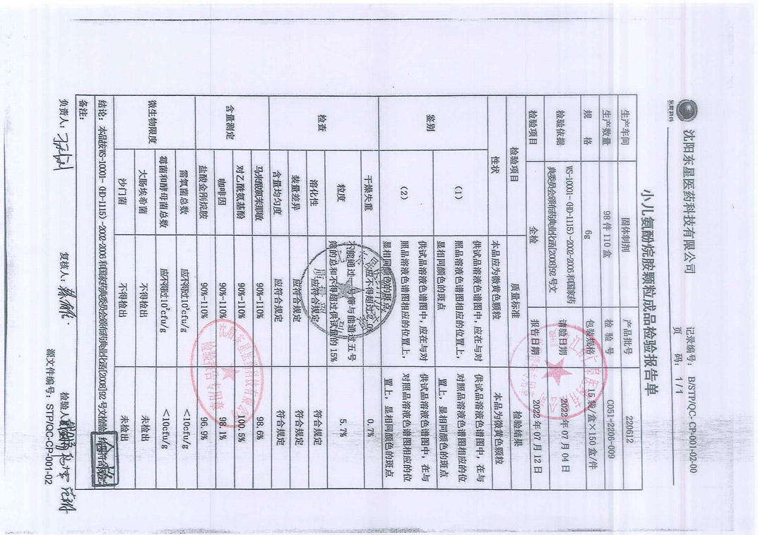 小兒氨酚烷胺顆粒22