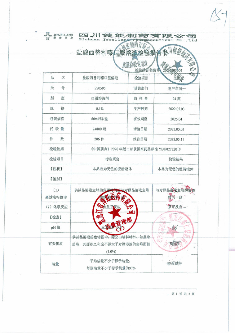 鹽酸西替利嗪口服溶液