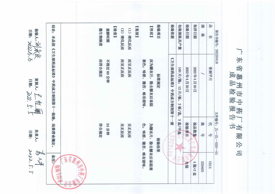 藿香清胃片20220