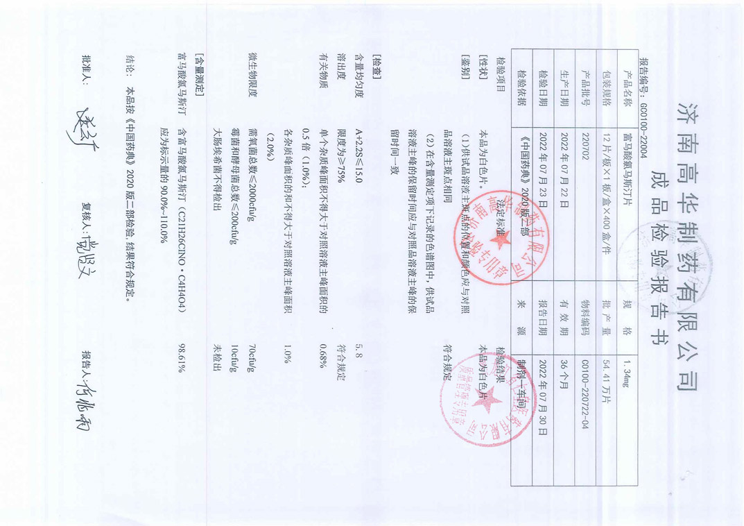 富馬酸氯馬斯汀片22