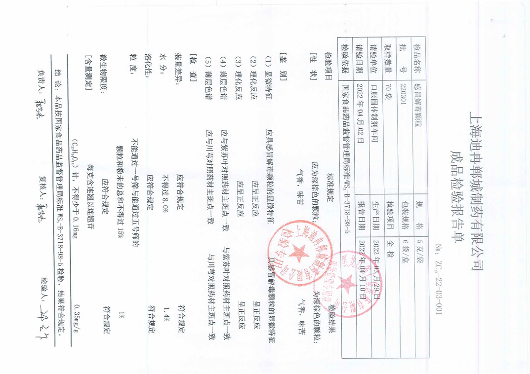 感冒解毒顆粒2203