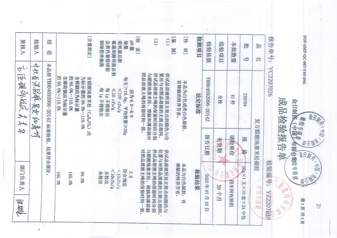 復(fù)方醋酸地塞米松凝膠